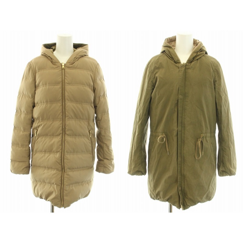 ドゥーズィエムクラス DEUXIEME CLASSE 12AW ダウンコート アウター リバーシブル フード 36 S ベージュ カーキ /YT レディース