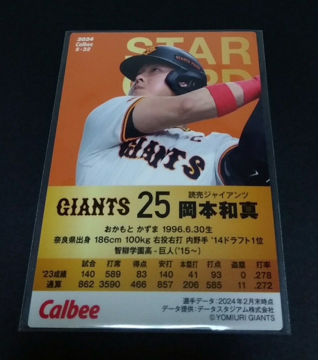 2024年カルビー 第2弾 岡本和真(巨人)スターカード。No,S-32。