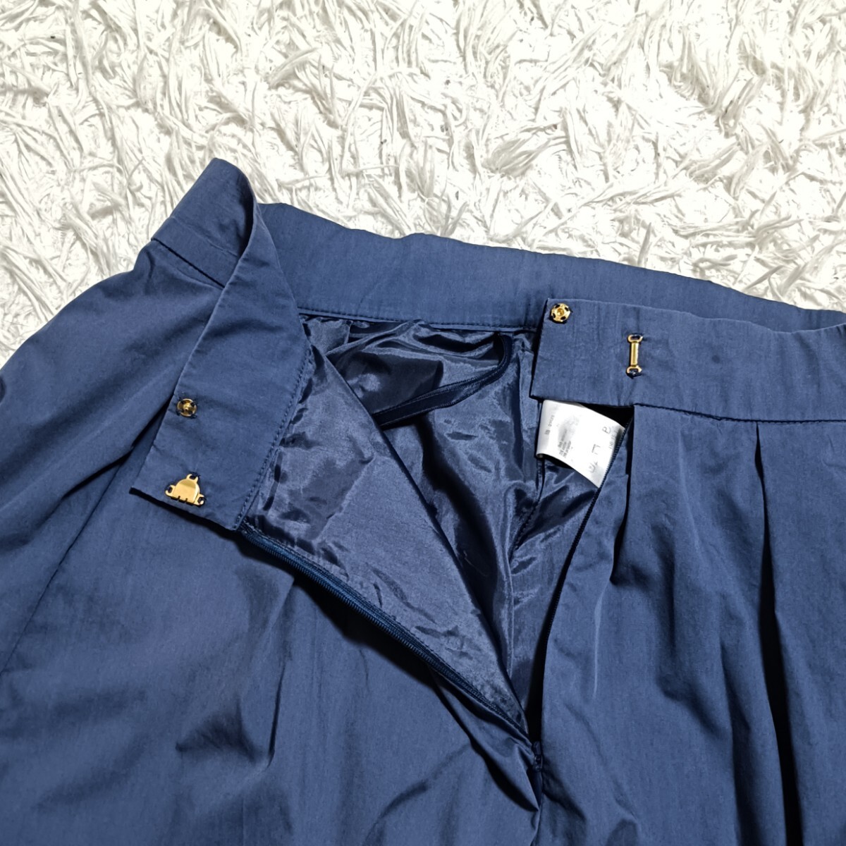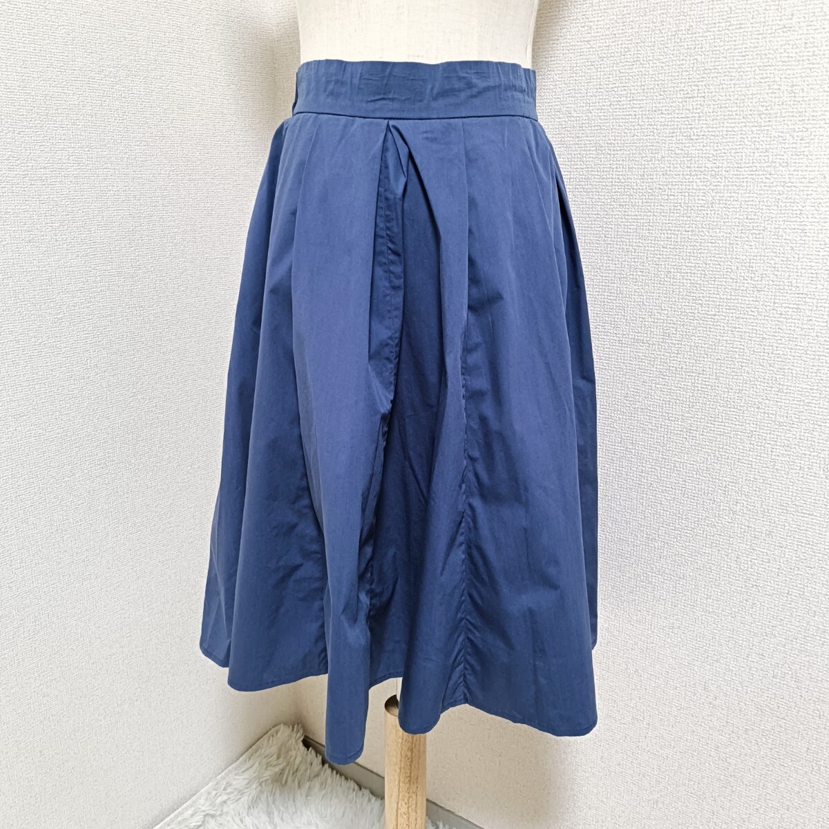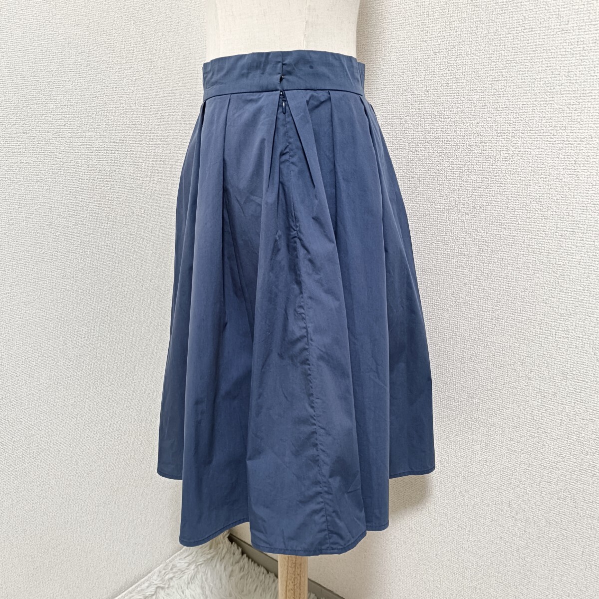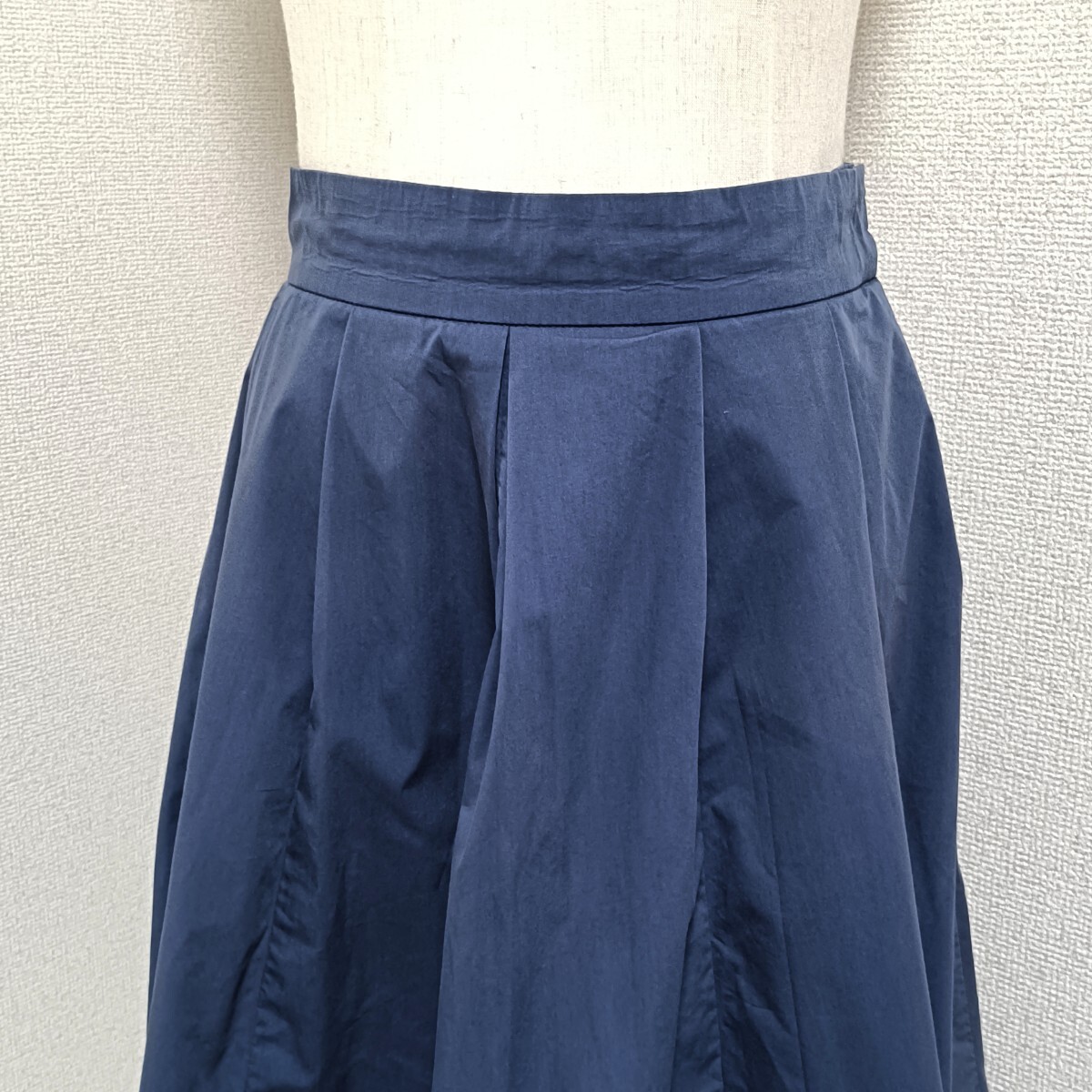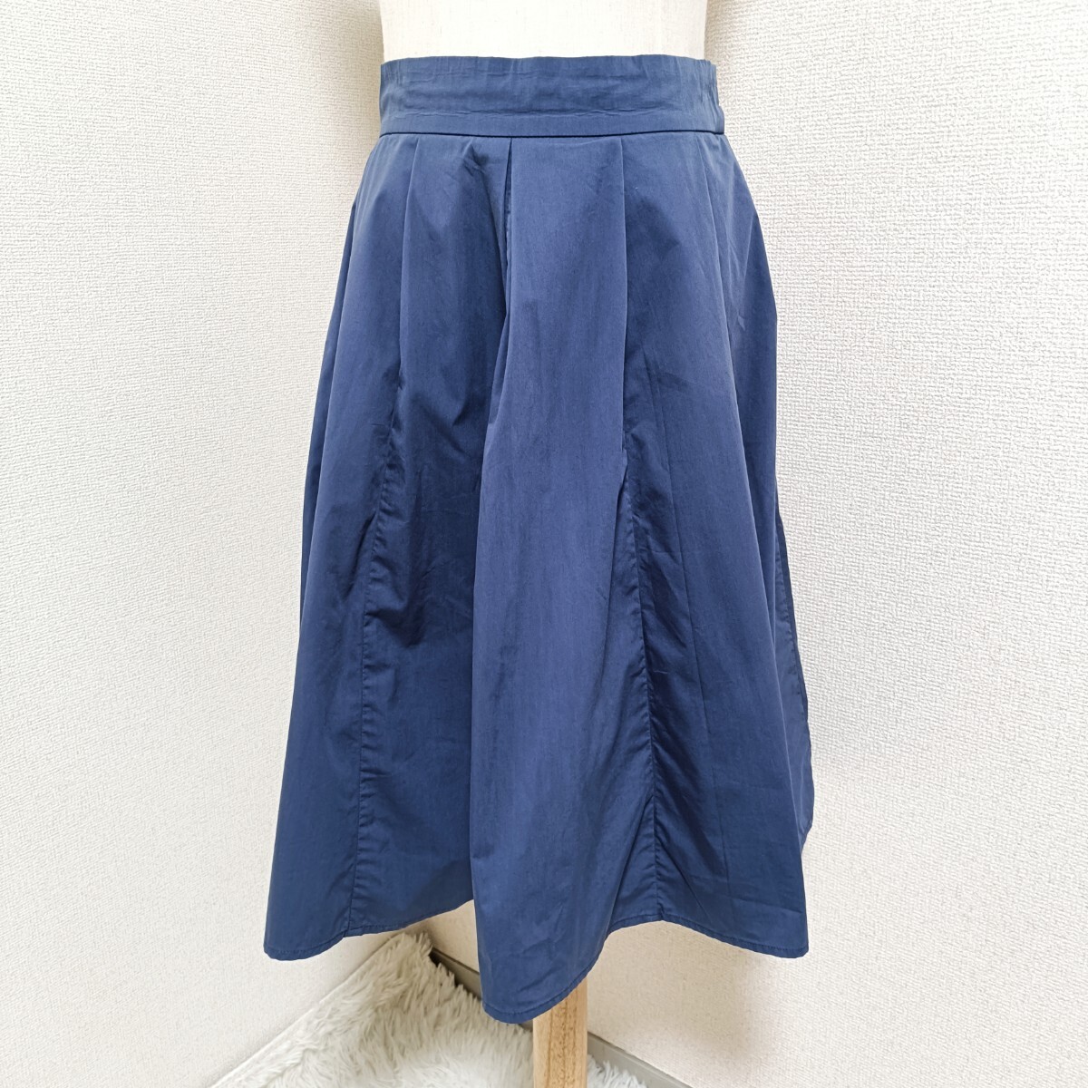 美品 タックフレアスカート ひざ丈 ネイビー オンワード樫山 2 レディース