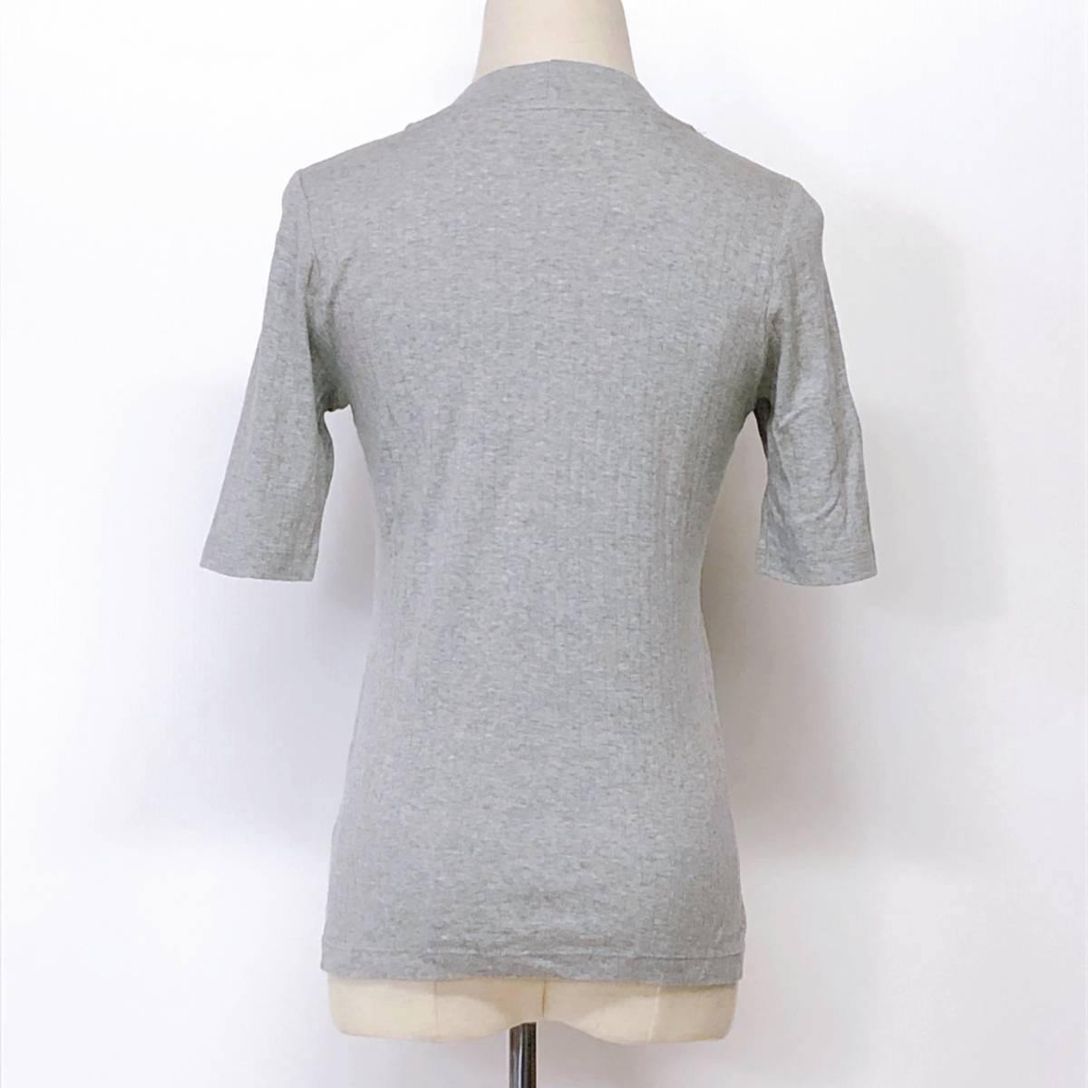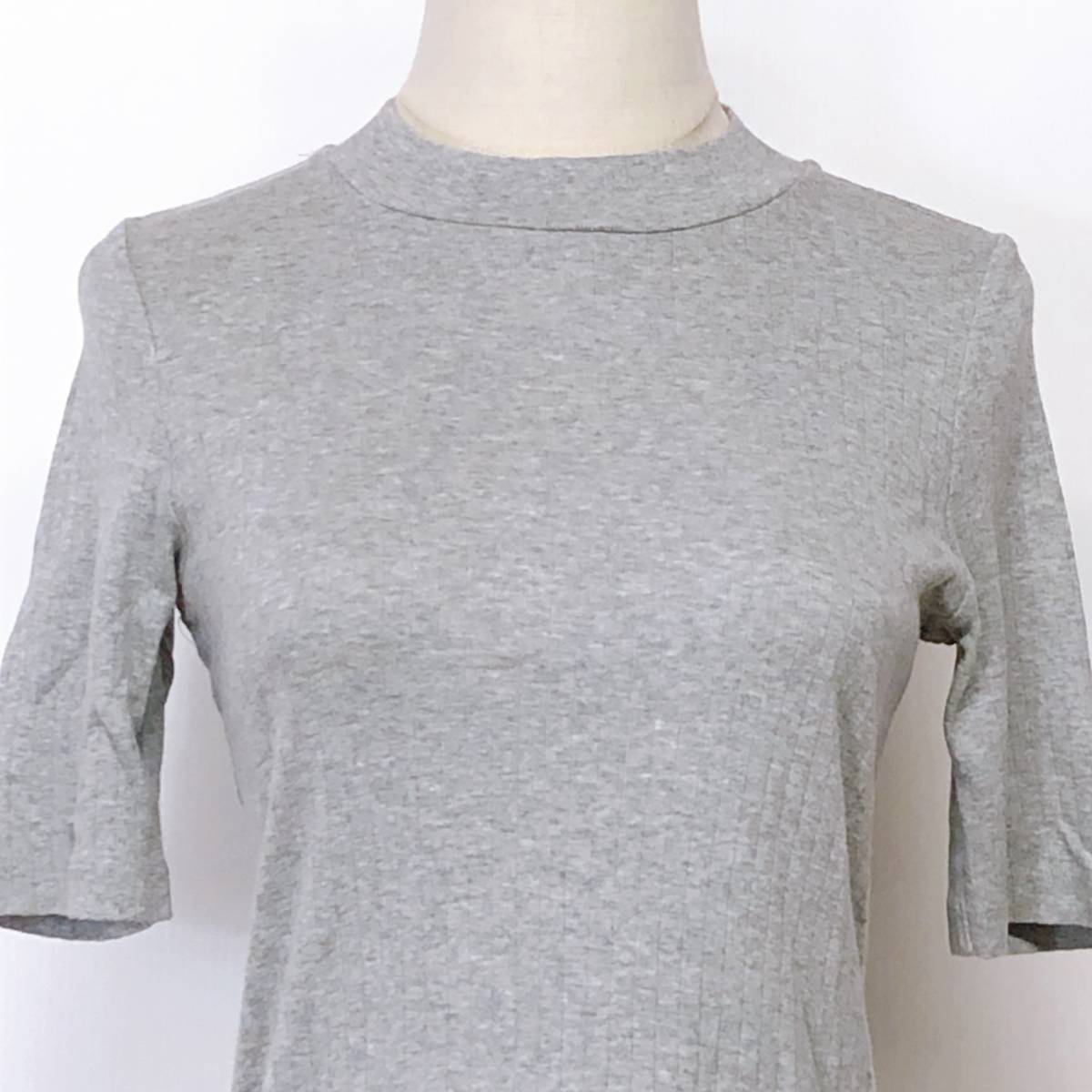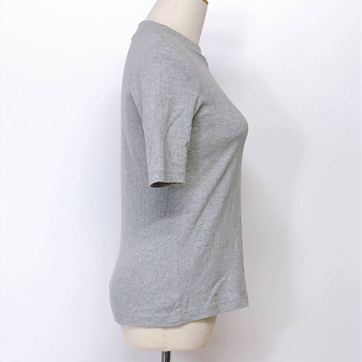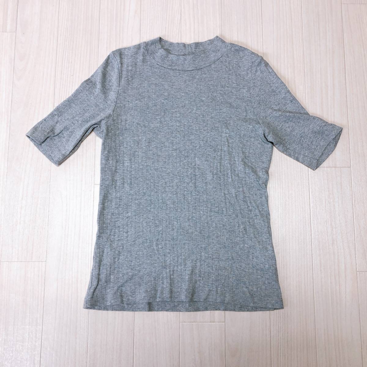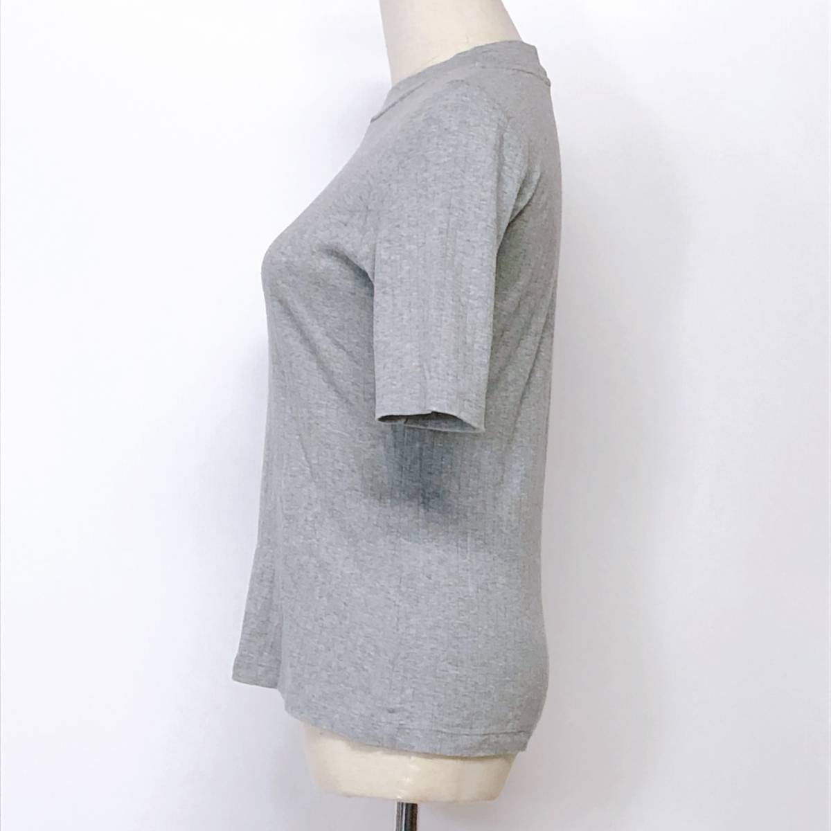 YX557 美品 UNIQLO(ユニクロ)レディース トップス 半袖 クルーネック 薄手 伸縮性 Mサイズ グレー 無地 綿100% 涼しげおしゃれシンプル夏