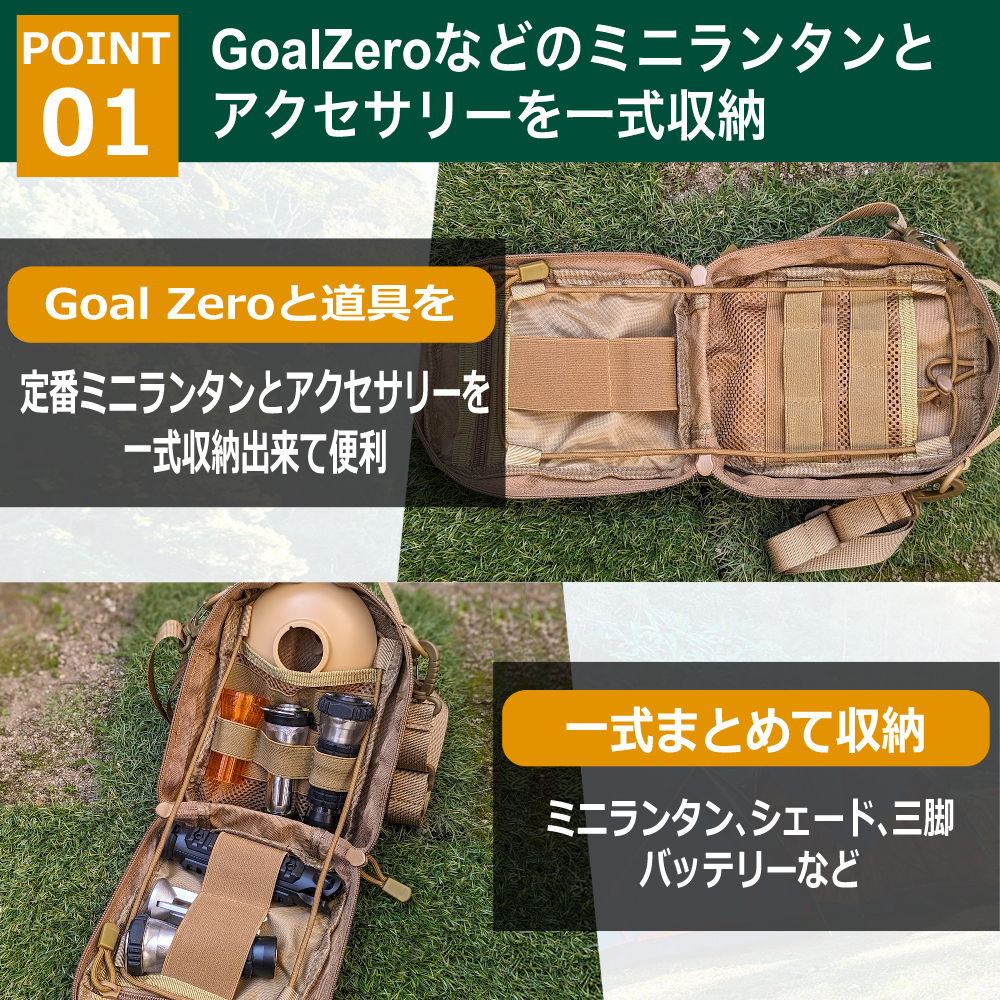 ◆【まとめて収納】キャンプの定番LEDミニランタンのゴールゼロとアクセサリー一式をまとめて収納出来る専用ケース