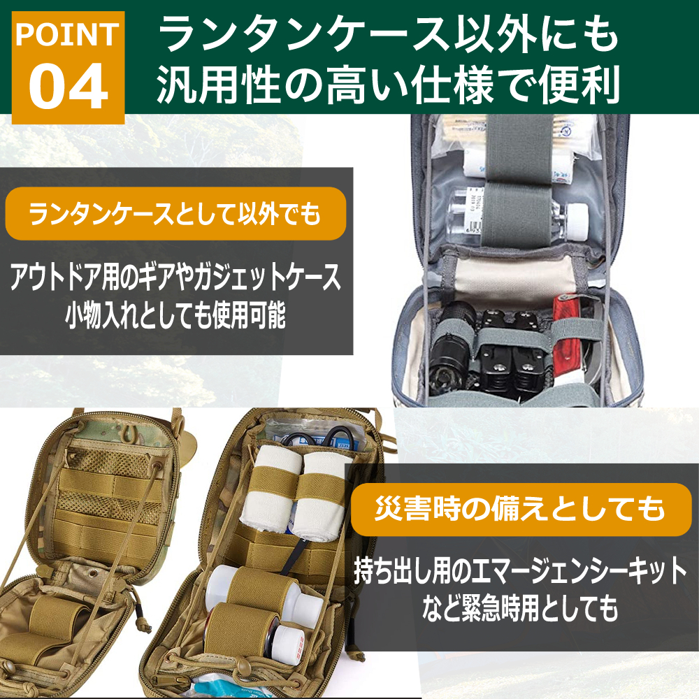 ◆【汎用性の高い仕様】ランタンケース以外にもアウトドア用のギアケース、ガジェットポーチ、小物入れとしても使用可能