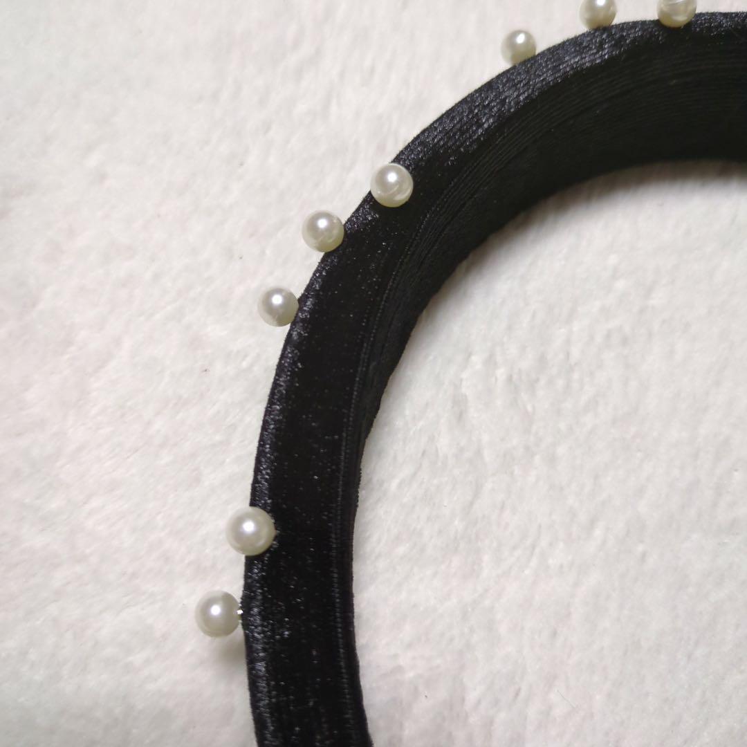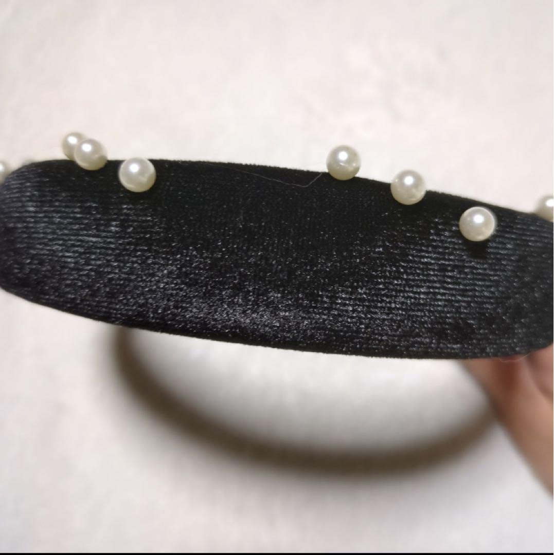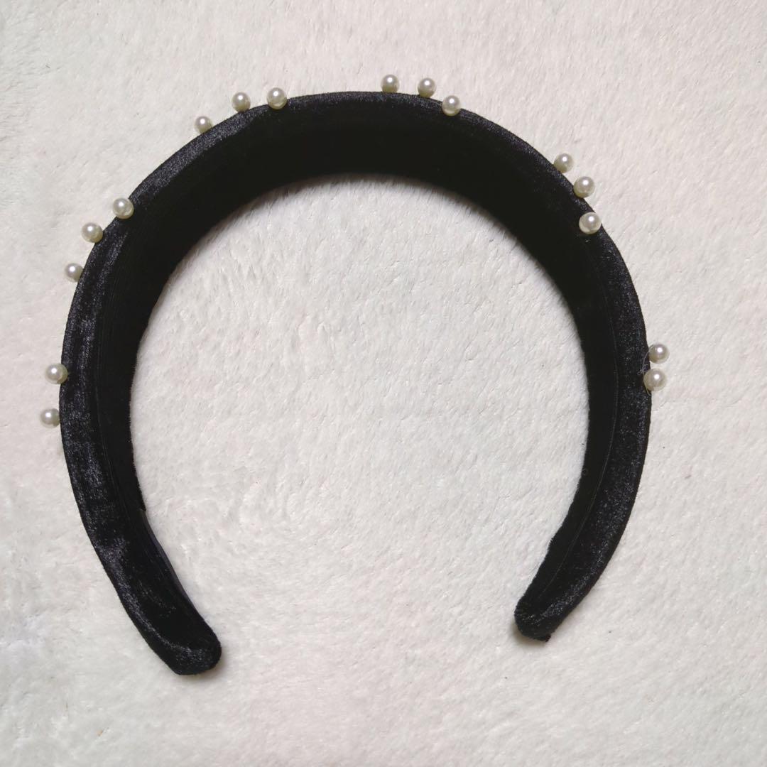 小粒のパールが付いた、ベロア生地のカチューシャです