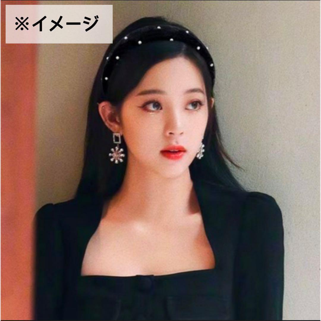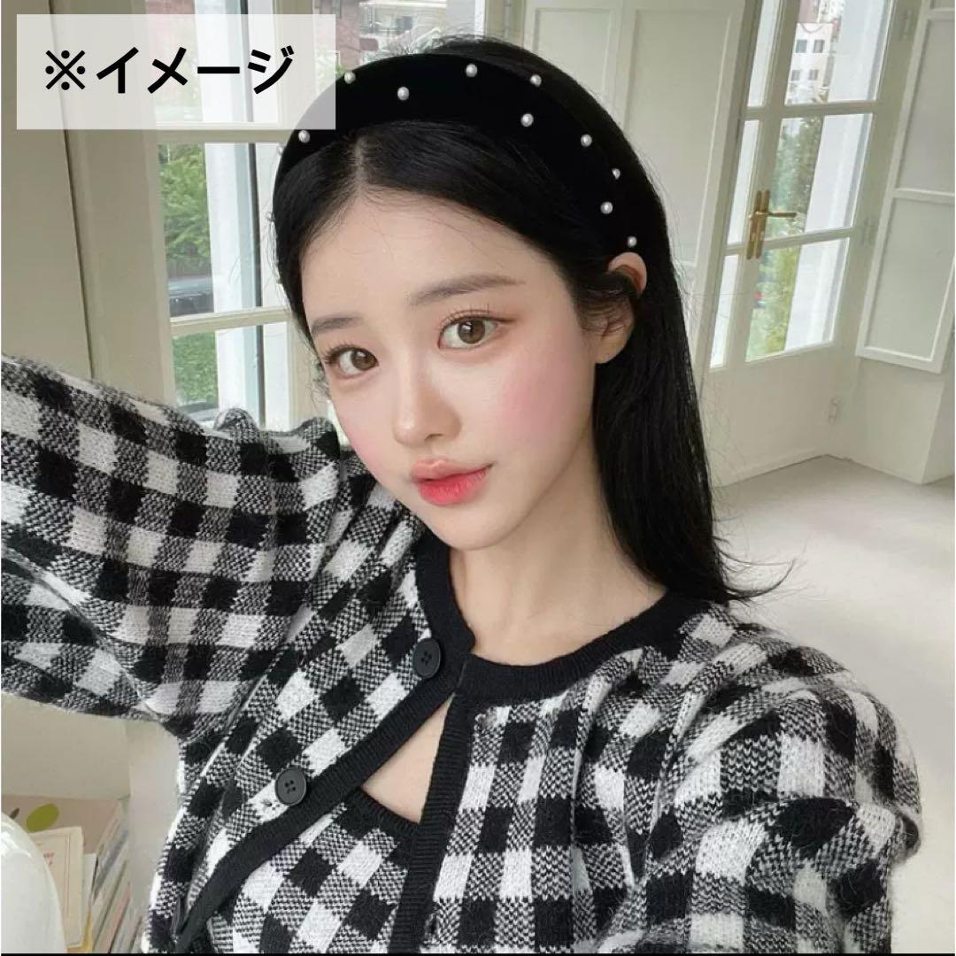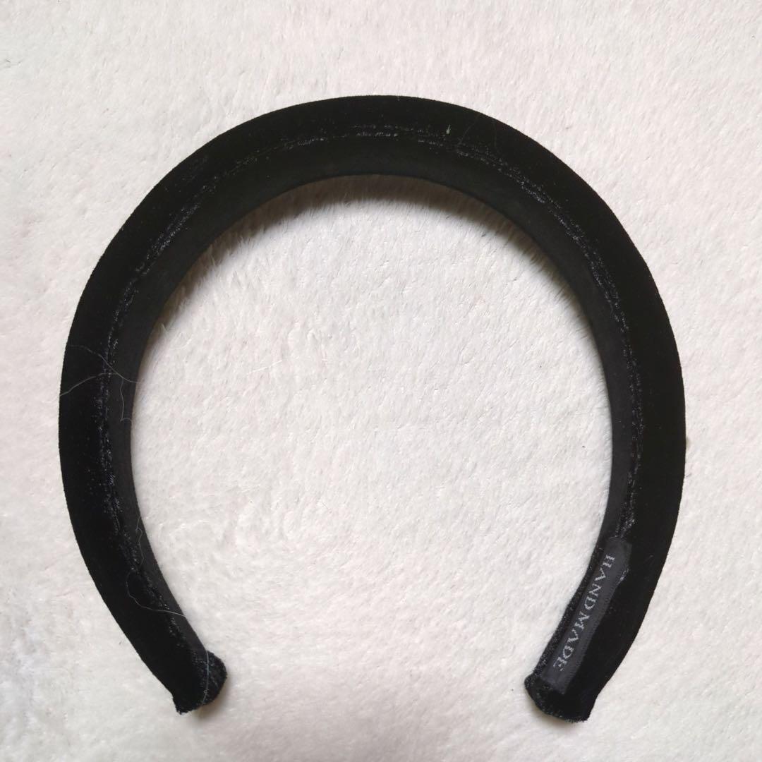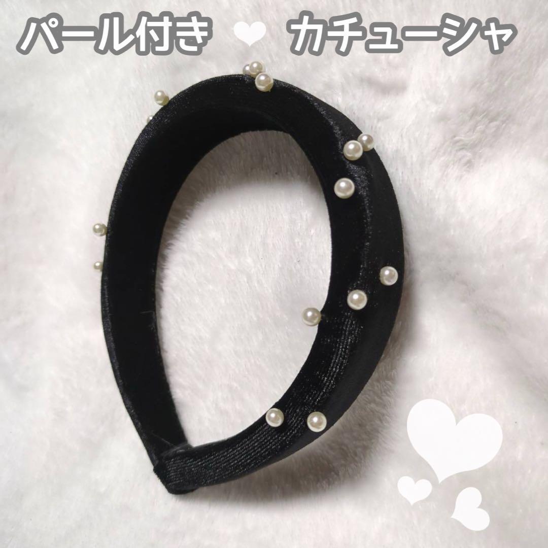 小粒のパールが付いた、ベロア生地のカチューシャです