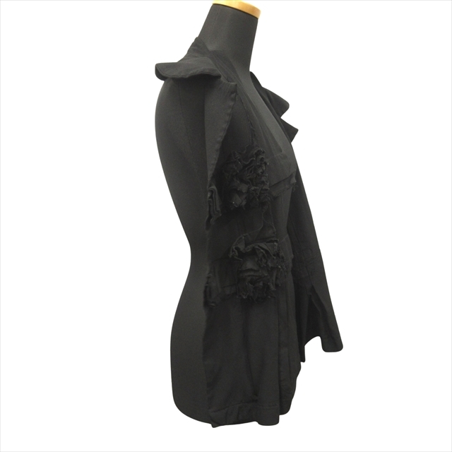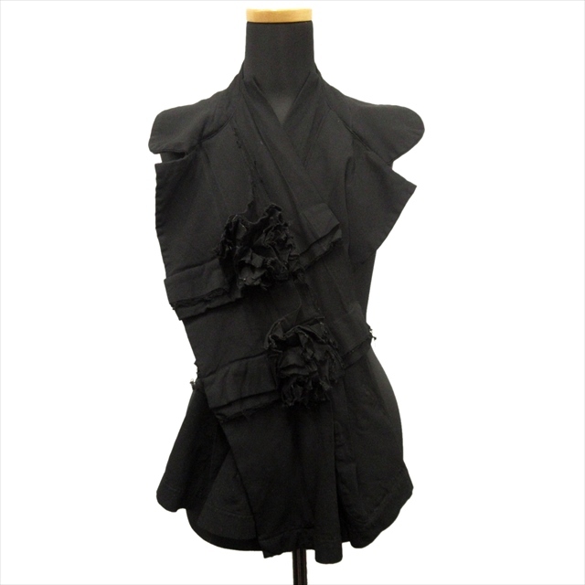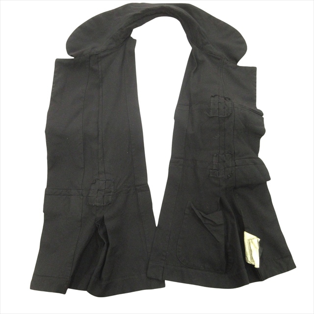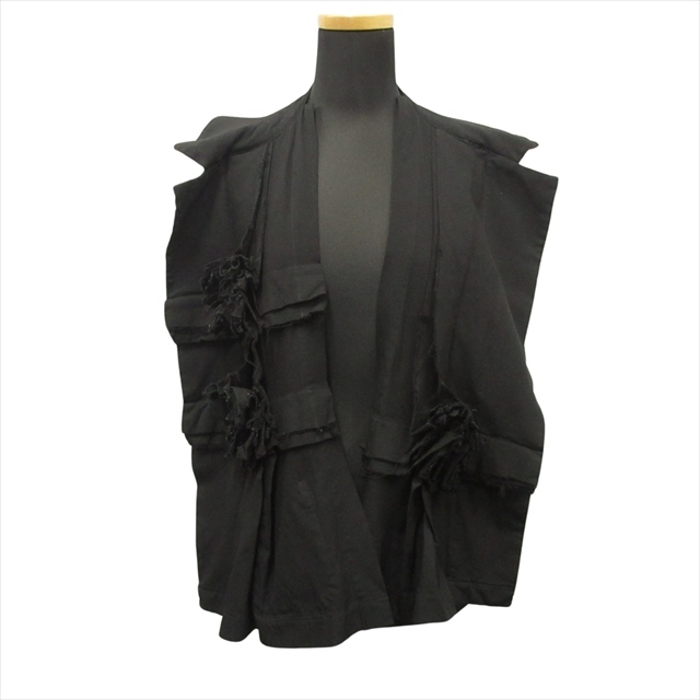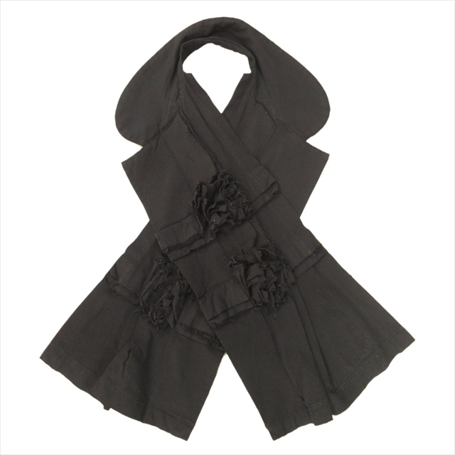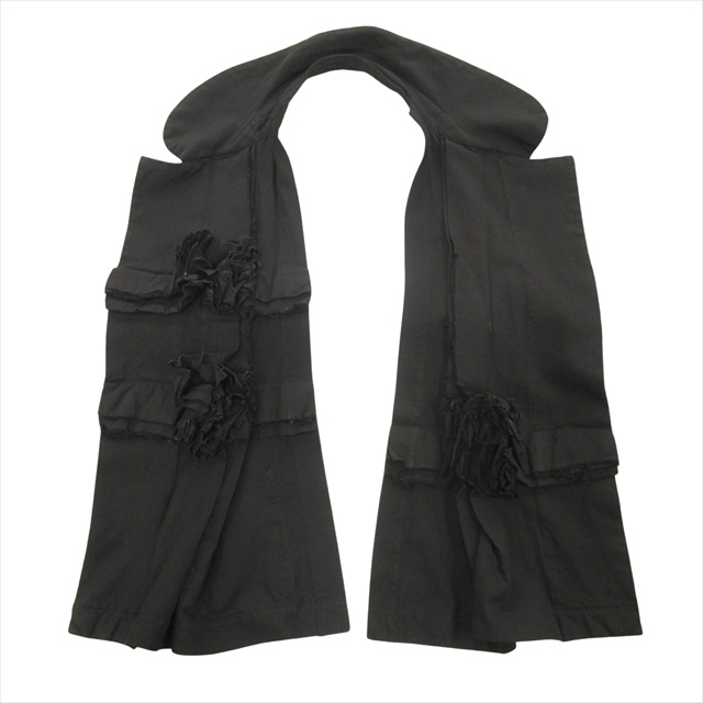 11ss コムコム コムデギャルソン COMME des GARCONS 製品染め エステル ジレ マフラー ベスト ストール 襟付き 黒 ブラック レディース