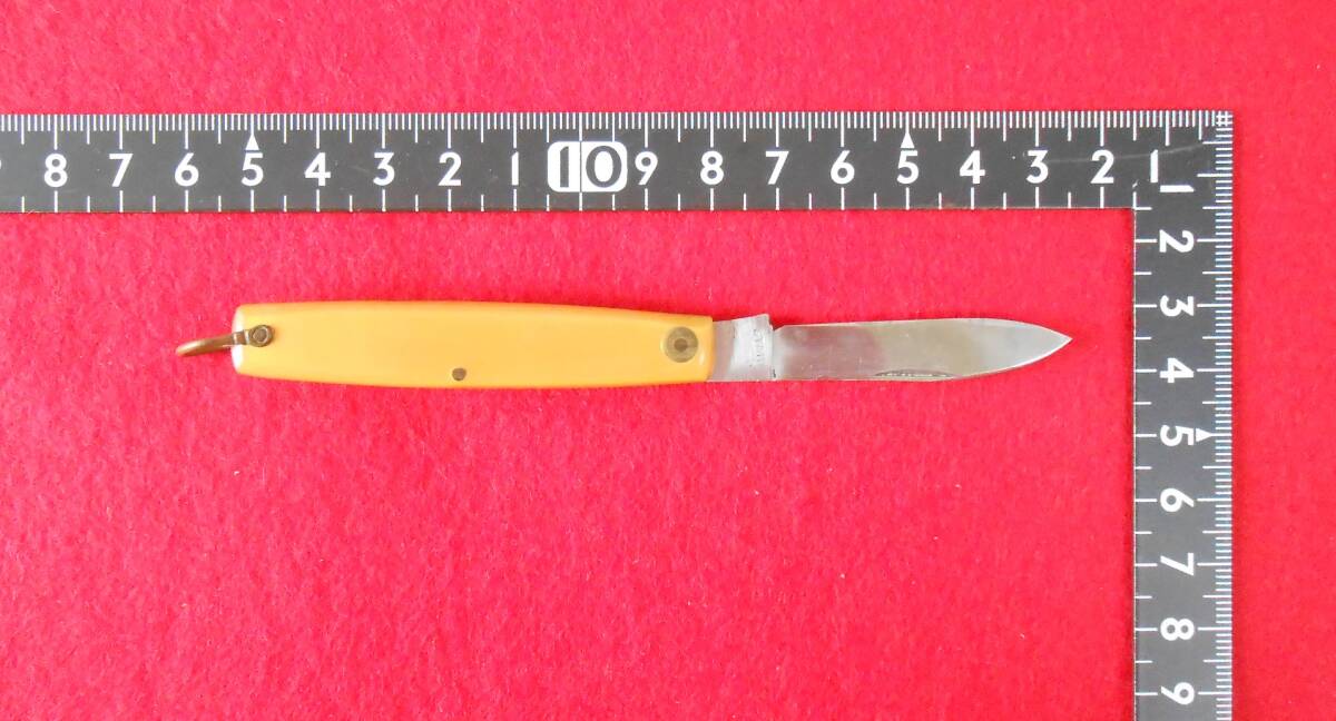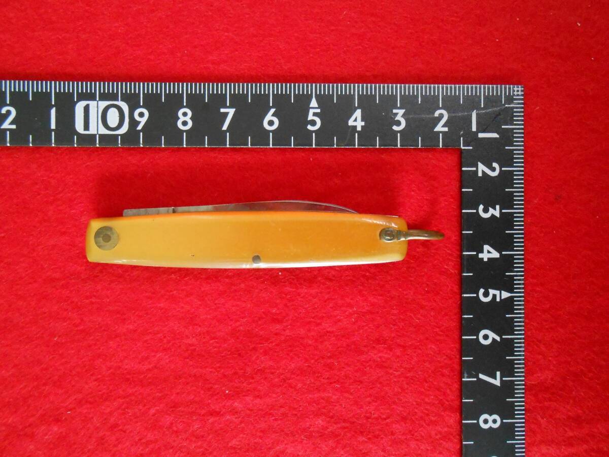 商品説明 | 古い折込ナイフです。 古い品物です。サビや汚れがあります。写真でご確認してください。 全長 125mm 折りたたんだ状態で70mm 刃渡 約45mm 重さ 24g |