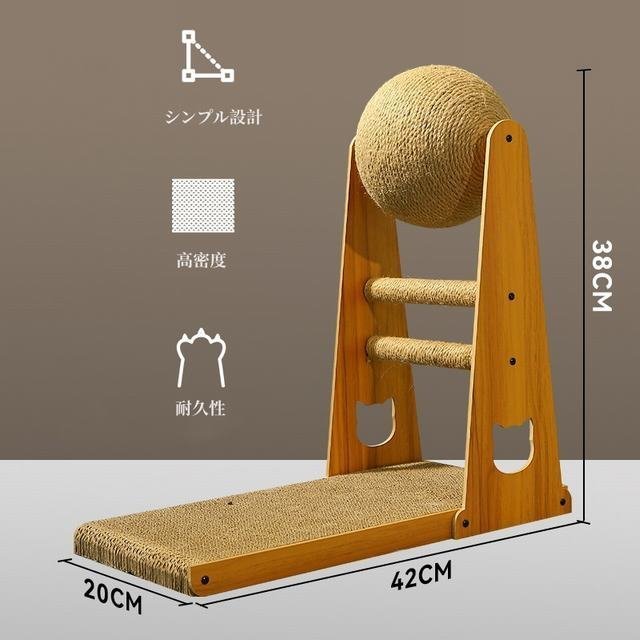 【サイズ】写真参照 組み立てが簡単ー段ボールと枠をアーチ型に合わせてネジで固定するだけなので、とても簡単です。 おもちゃ付きー回転する大きいサイザル麻のボールで遊べるので楽しんでいただけます。ボールがなくなる心配もありません。 高耐久のボールージュートを使用しているため長持ちします。 シンプルなデザインーナチュラルな色合いなので、どんな雰囲気のお部屋にも合わせることができます。 コンパクトに収納できます。不使用時は解体できるので、すっきりと収納できます。 注意事項:海外製品インポートなので,生産時や運送中に細かいキズが付く可能性がございます。使用には影響がございません。ご了承の上ご購入ください。
