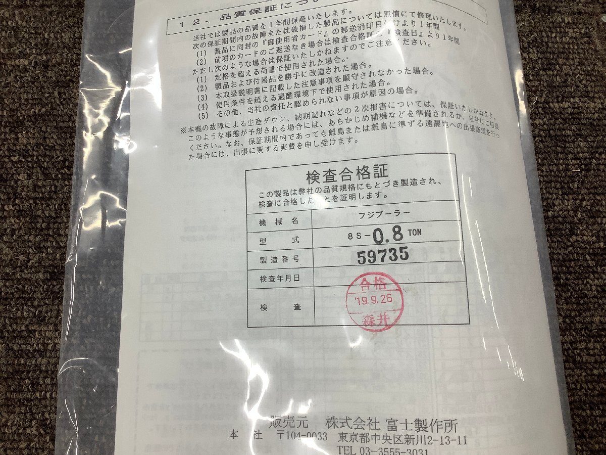 | 【未使用】富士製作所 フジプーラー レバーホイスト 8S 0.8TON レバーブロック | |