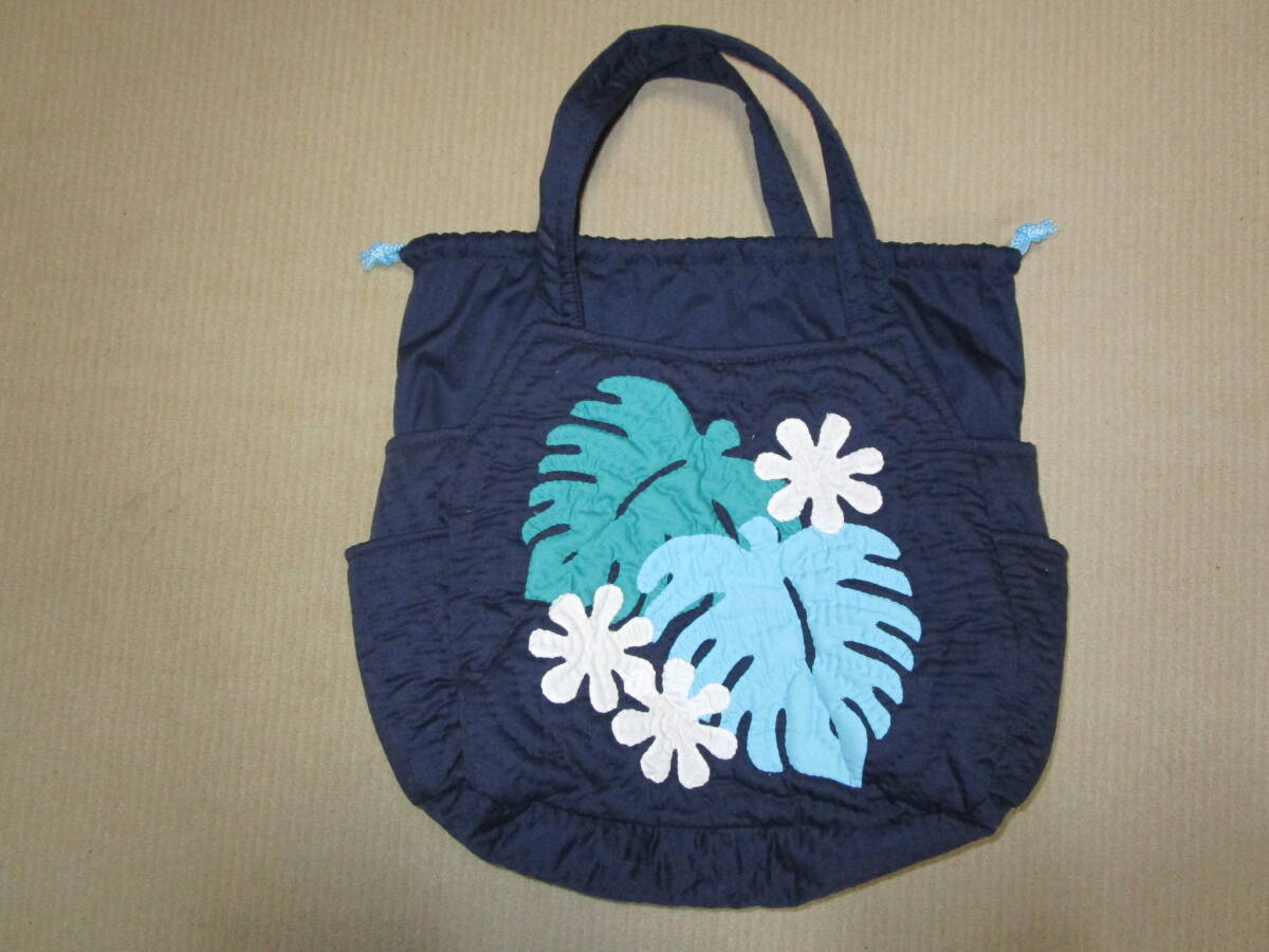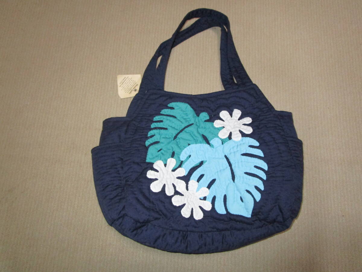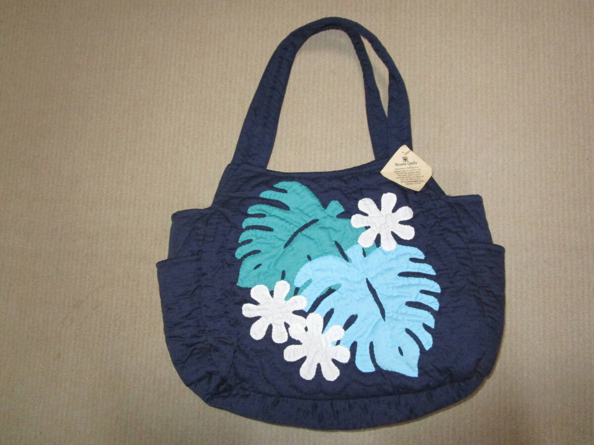 新品即決!ハンドメイド!ハワイ USA製!Moana Quilts モアナ キルト ハワイアン キルティング バッグ NAVY系