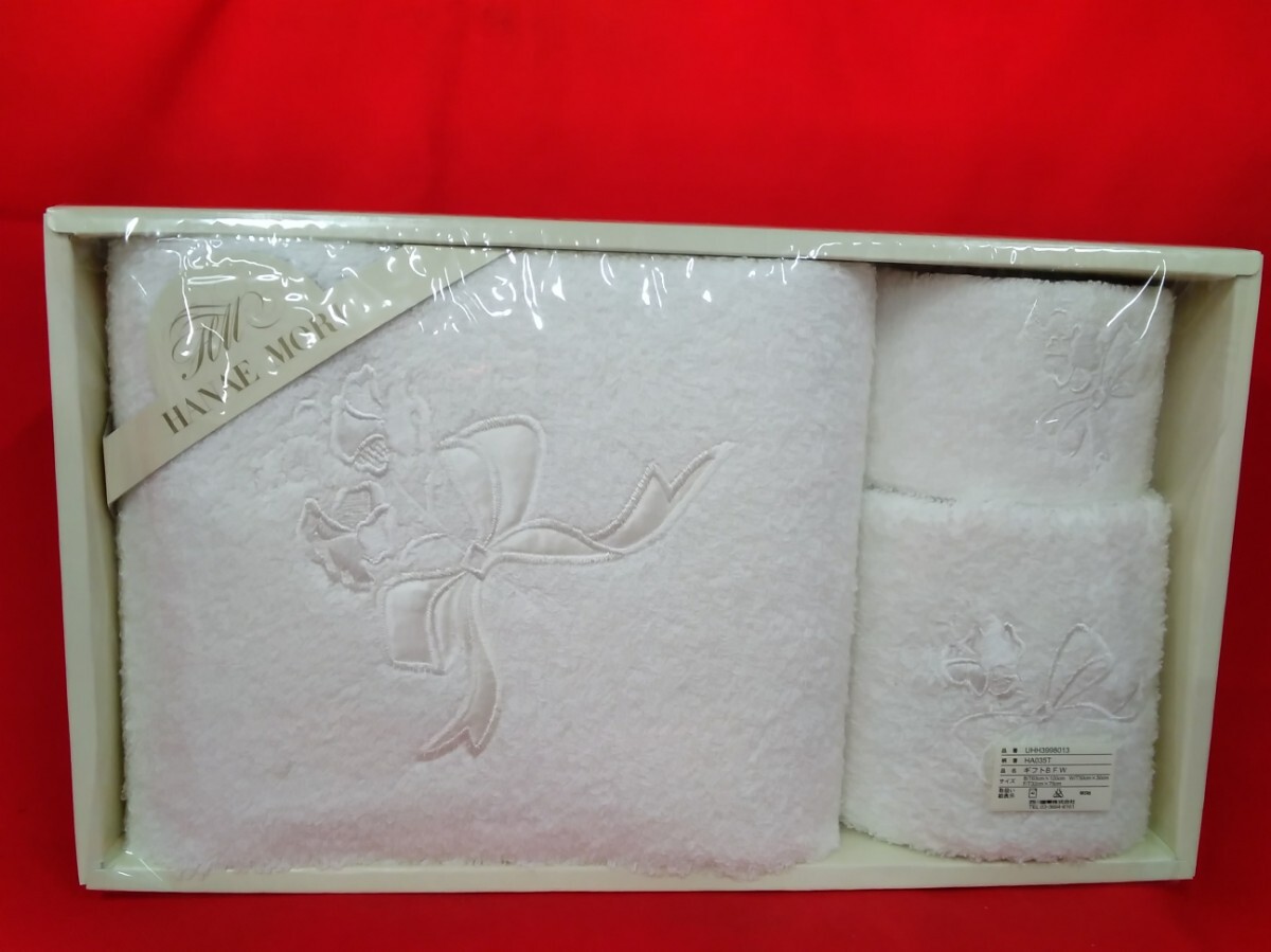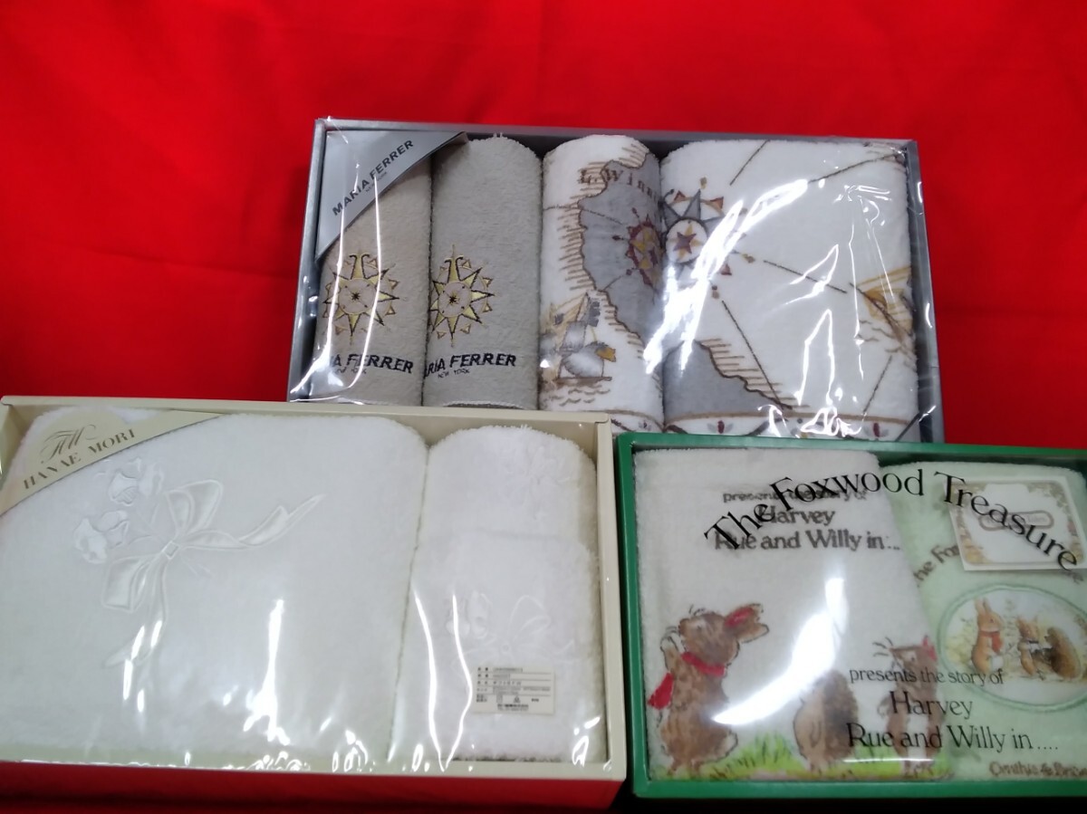 g_t H017 未使用品・箱入りタオル バスタオル、フェイスタオル、おしぼりタオル 綿100% 3箱9枚まとめ ☆箱無し発送、承ります!