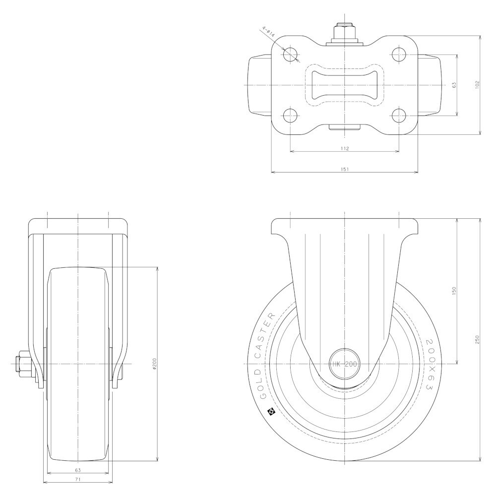 車輪径(材質) 200Φ(ゴム)