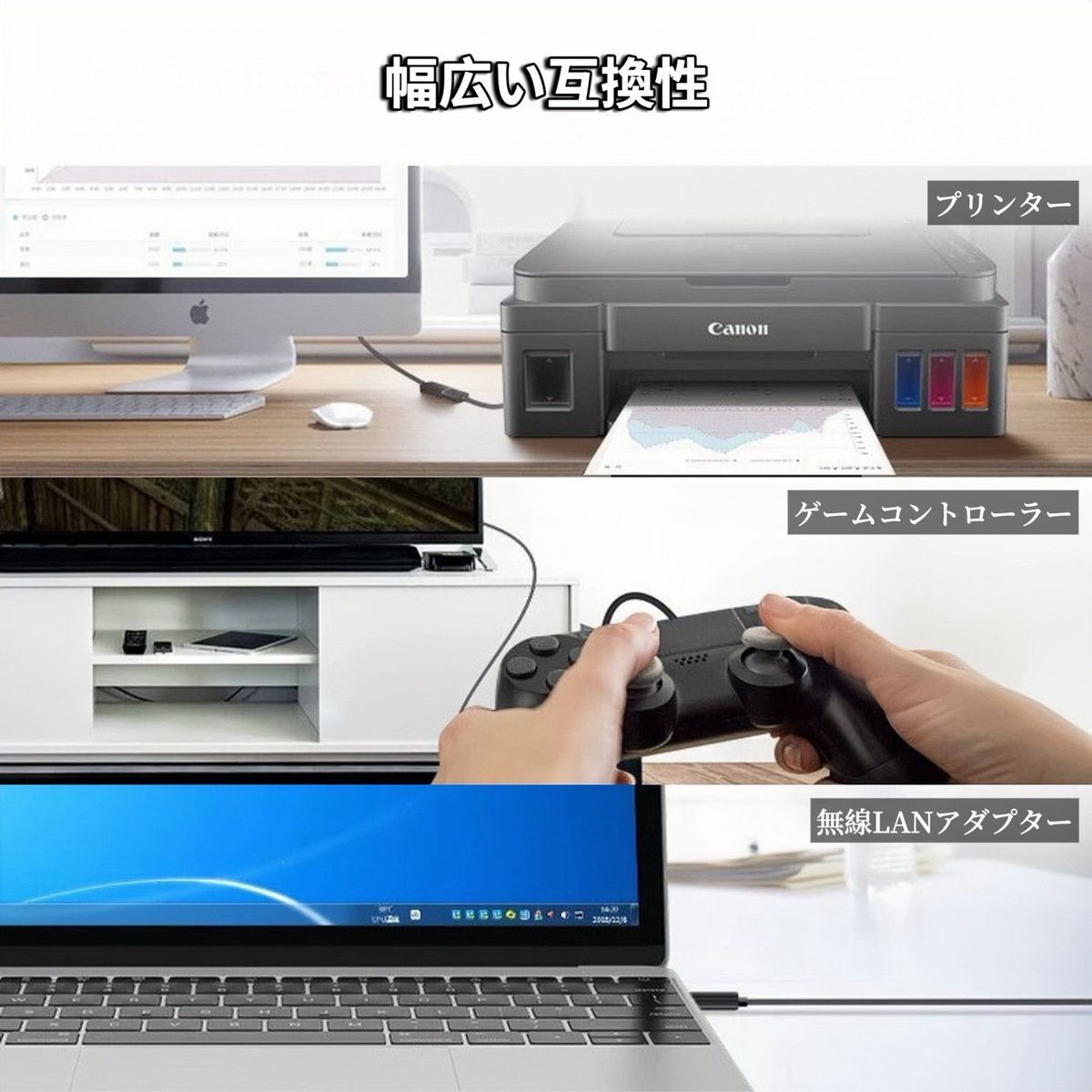 また、黒色のシンプルでスタイリッシュなデザインで、どんなシーンでも違和感なく使用することができます。プリンタ、ゲームコントローラー、無線LANアダプターなどなど様々なデバイスに対応しています。