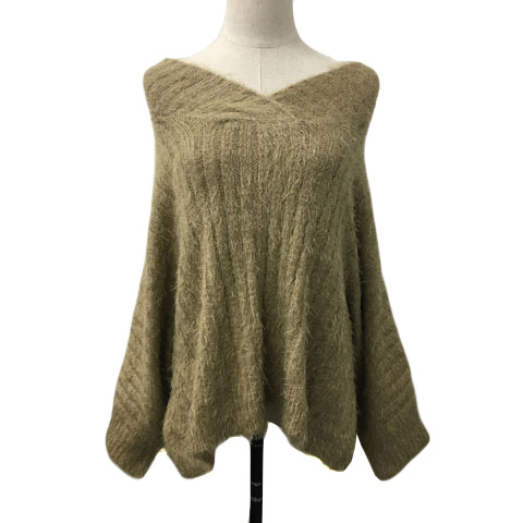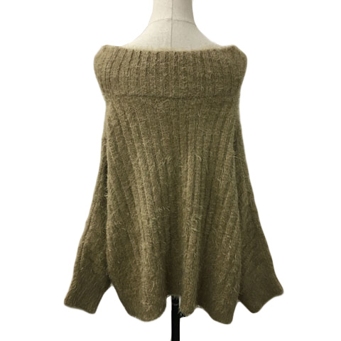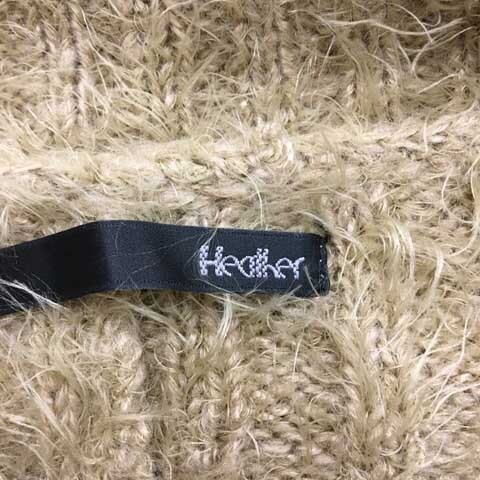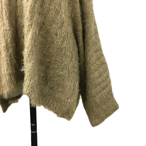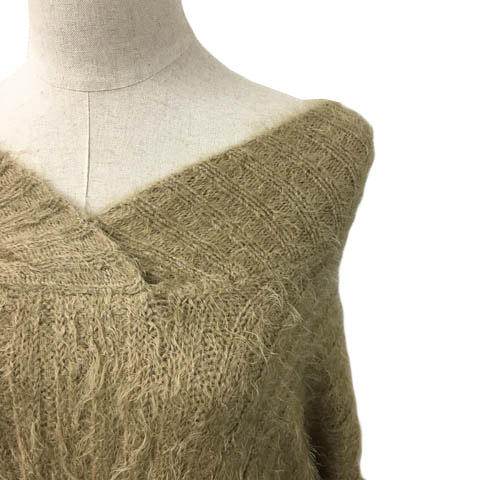 ヘザー Heather AZATO セーター ニット オフショルダー プルオーバー シルク リブ シャギー 長袖 F ベージュ レディース