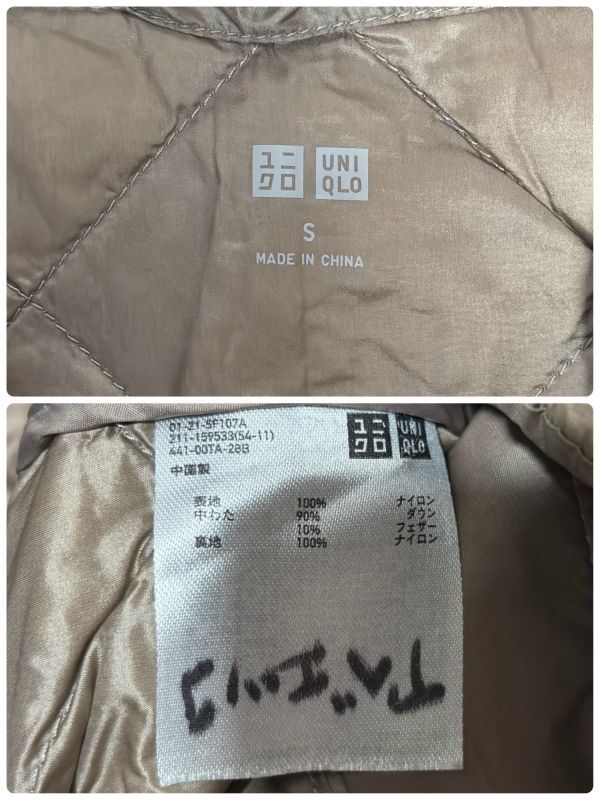 ★キルティング★UNIQLO ダウンジャケット ブラウン系 sizeS ウルトラ 軽量 防寒 ユニクロ 古着 クリーニング プレス済み 1004