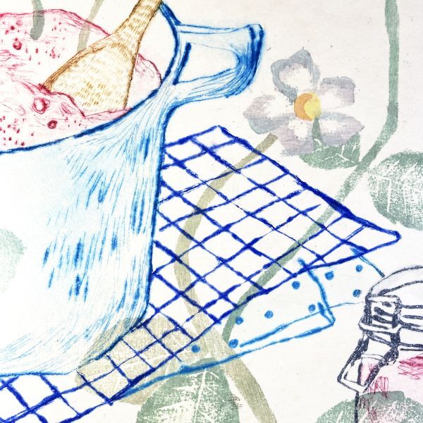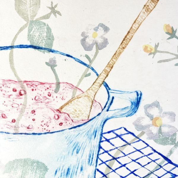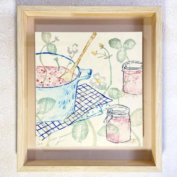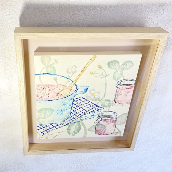 版画コラージュアクリル画キャンバス『sweet strawberry jam』 山路絵子 YM019