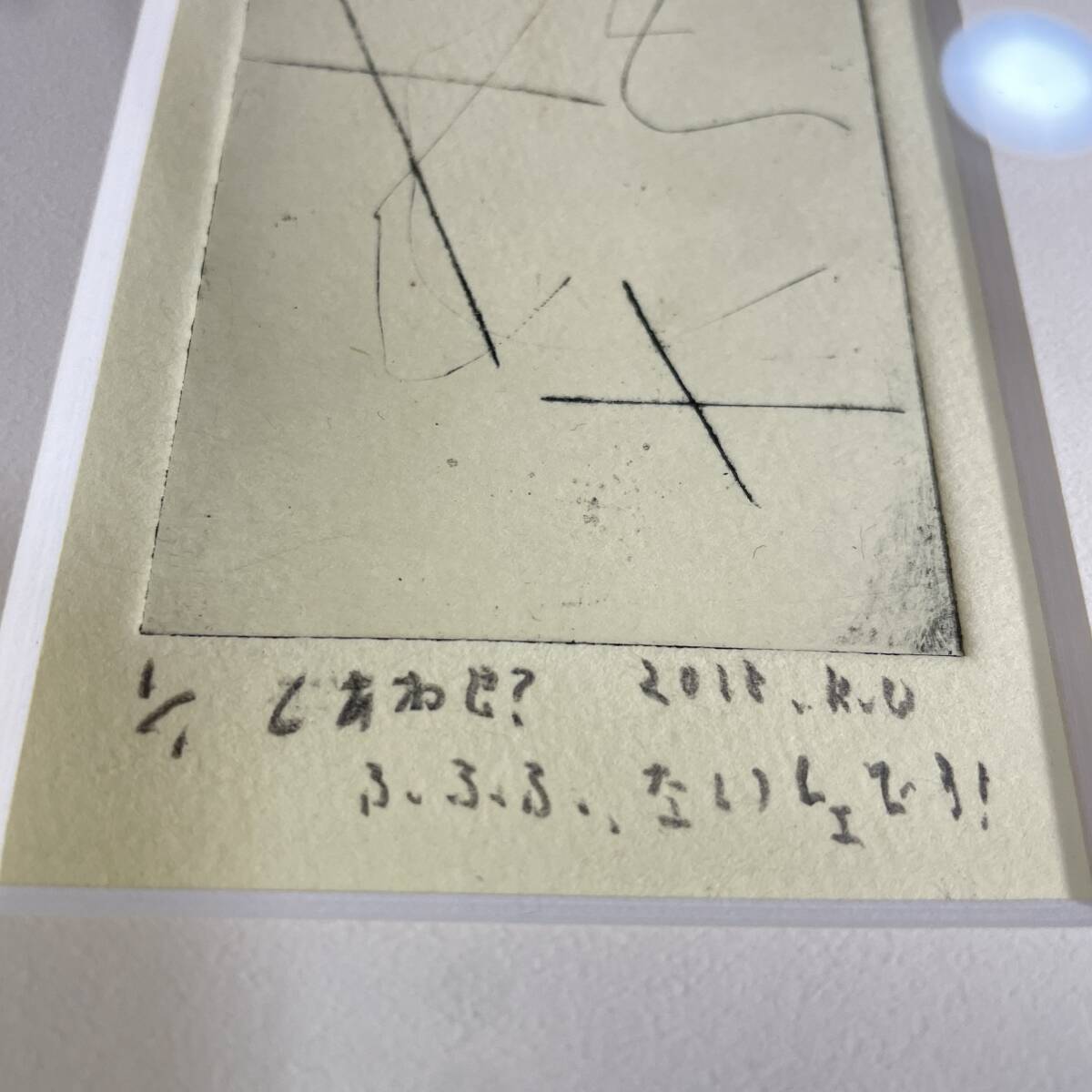 凹版画、ドライポイント『しあわせ?ふふふ、ないしょです!』上野 謙介 UE010