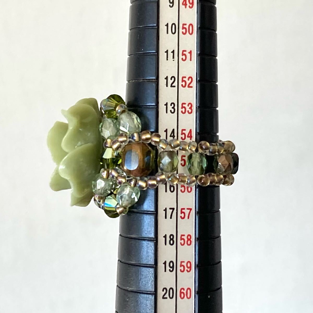 14-16号 ビーズ リング  大きい薔薇のビーズリング ライトグリーン