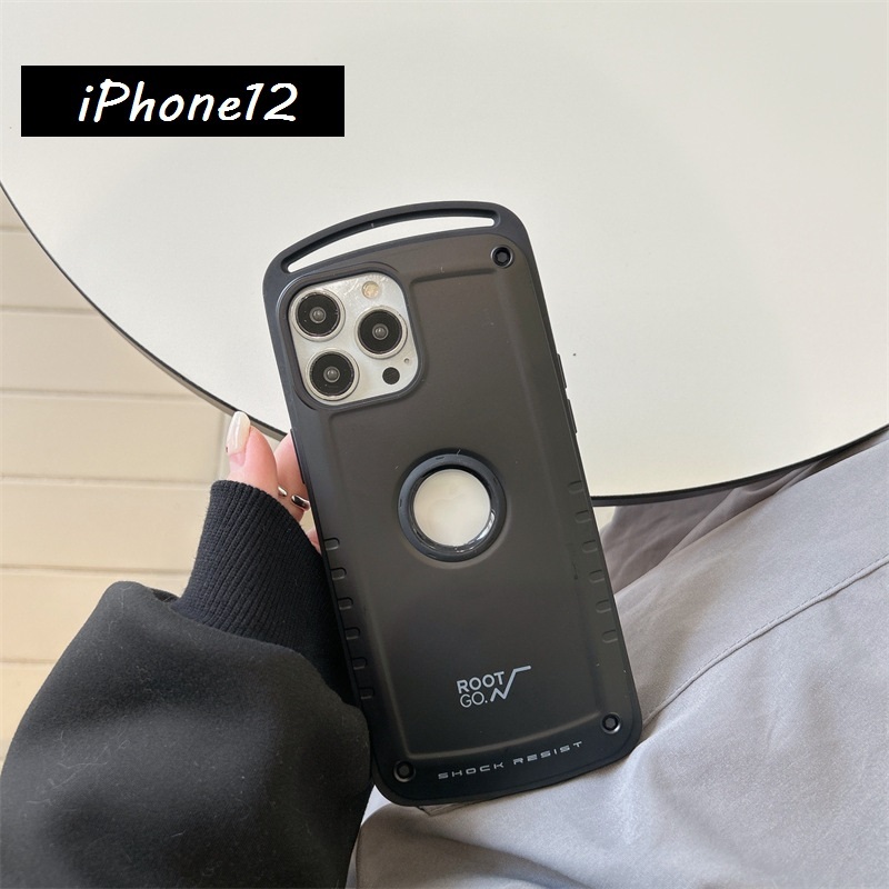 iPhoneケース iPhone12 13 14 衝撃カバー ブラック 黒 K062