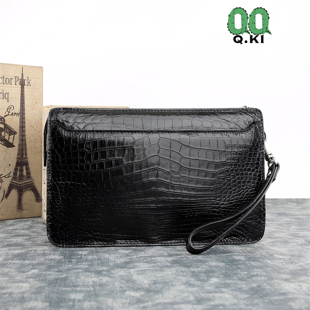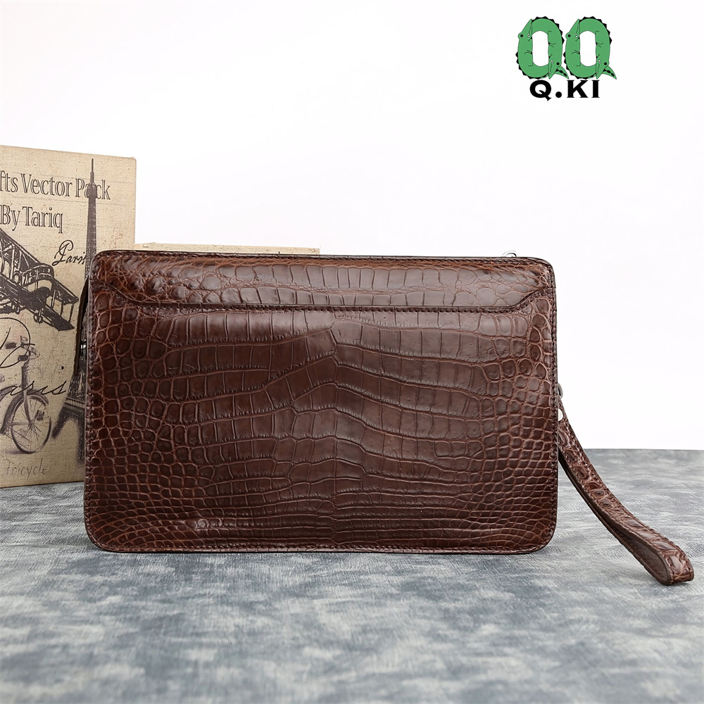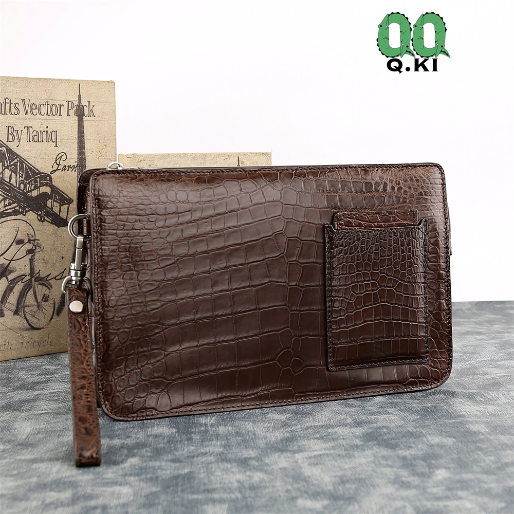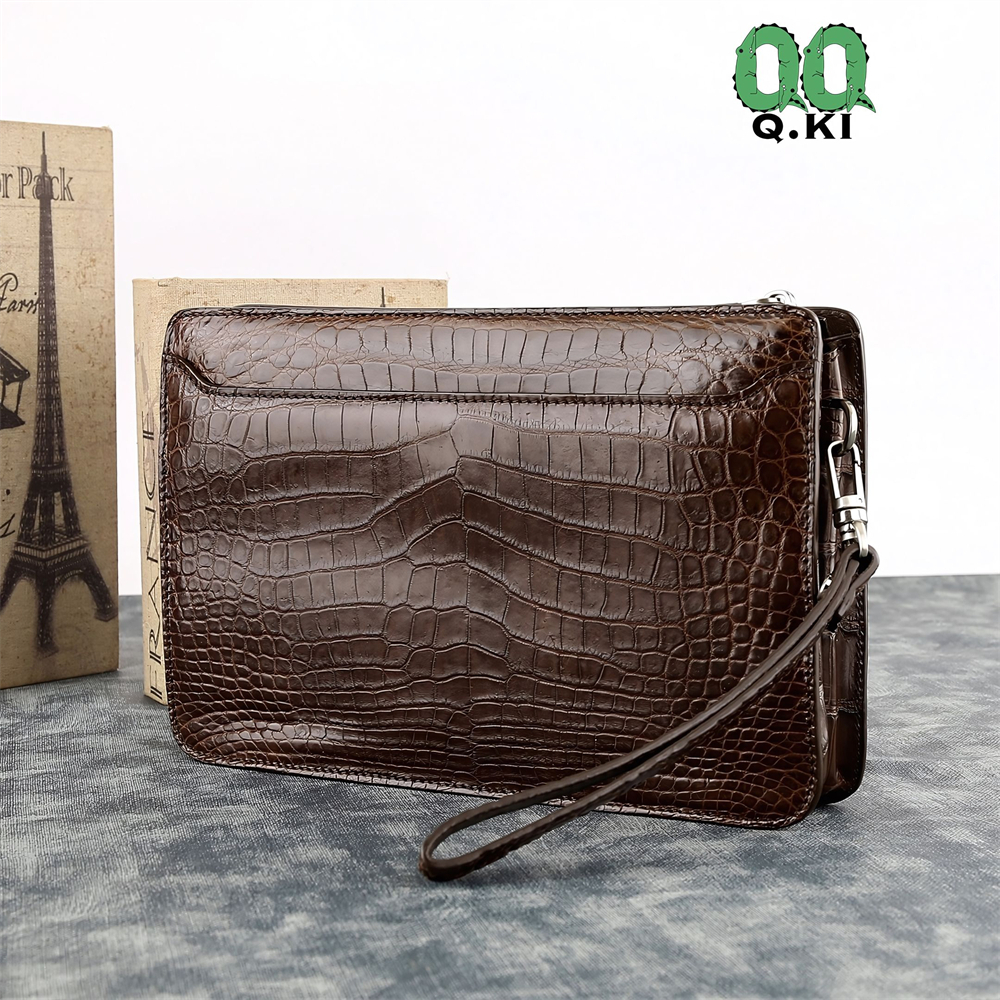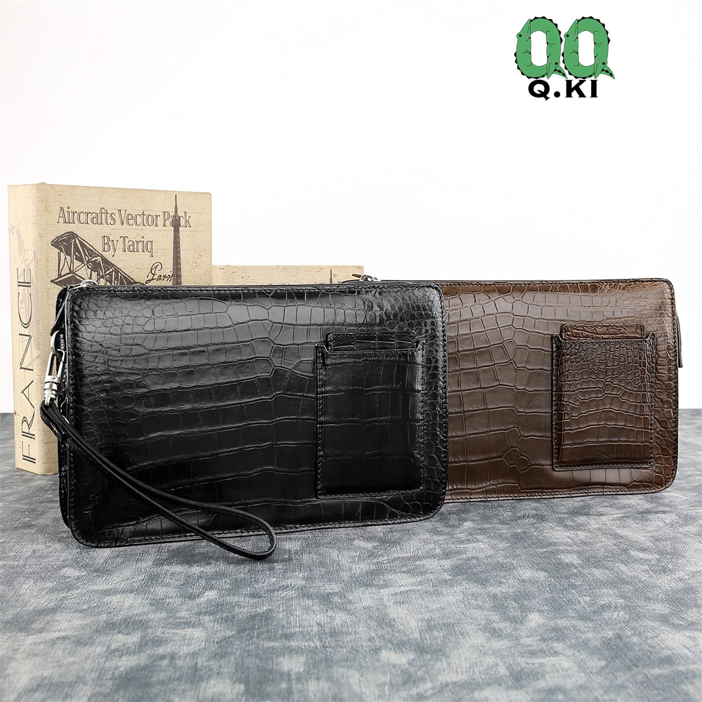 クロコダイル セカンドバッグ ワニ革本物保証 クラッチバッグ 本革 マンズバッグ 黒/茶 大容量