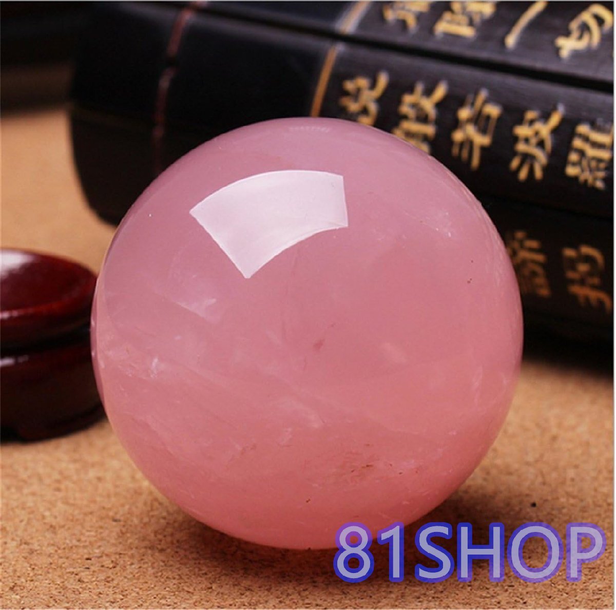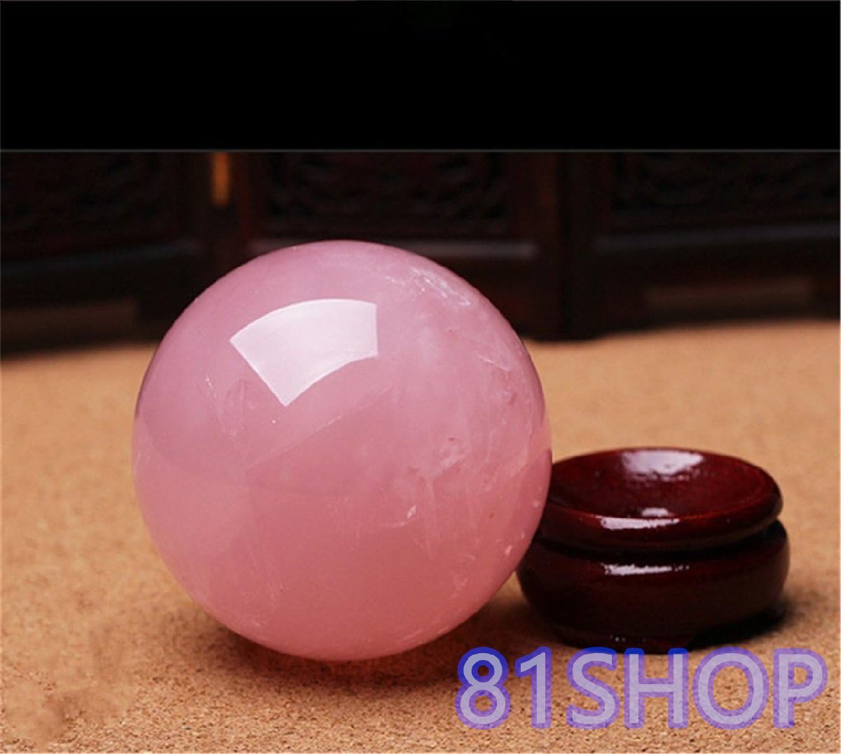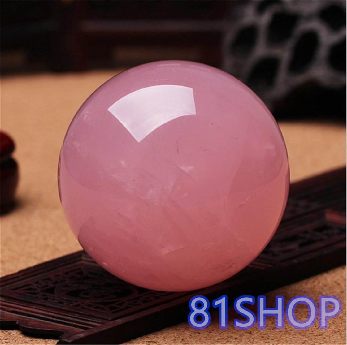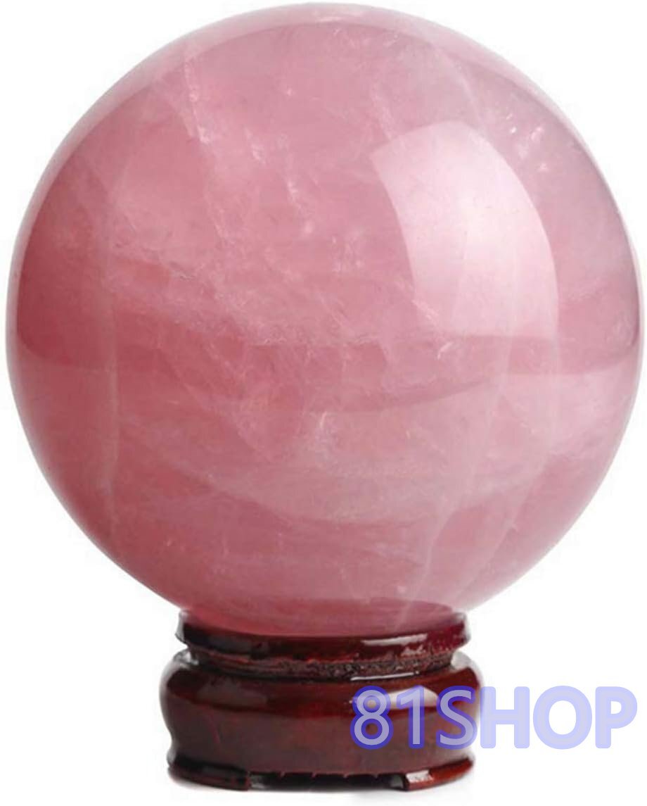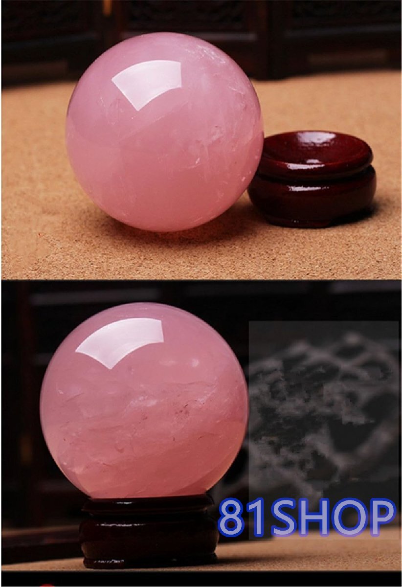 「81SHOP」水晶玉 ローズクォーツ ピンク 上質 珠 台座付け 浄化 開運 お守り パワーストーン 丸玉 アクセサリー (4cm)