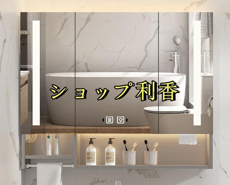 LED ミラーキャビネット 風呂 鏡 ステンレススチール製バスお風呂 鏡 人体センサーと温度 曇り止め 3 色モード 浴室 鏡 コンセントと USB 調光器(90cm/35in)