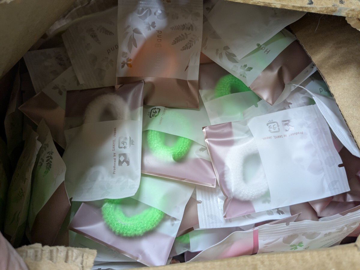新品 ヘアバンド ヘアゴム 5色 個装 500個入り 1箱 ミニヘアゴム 備品 消耗品 アメニティ プレゼント サービス用 髪結び 大量 まとめ売り