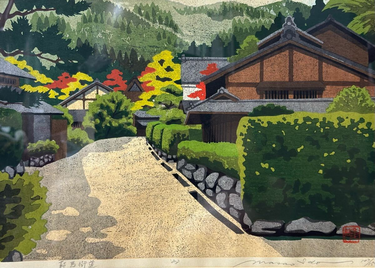 真作保証 井堂雅夫『鞍馬街道』 1983年 107/150 木版画 額装