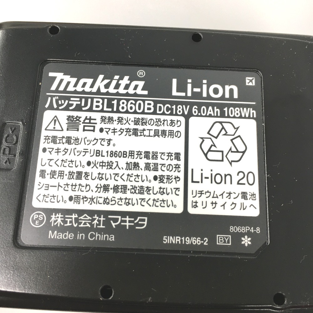 【商品名】中古 MAKITA マキタ リチウムイオンバッテリー BL1860B 18V 6.0Ah 未使用に近い