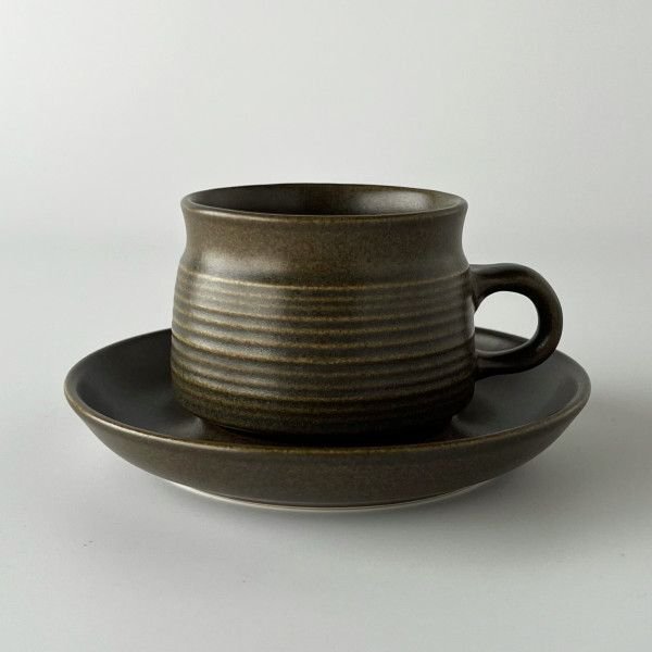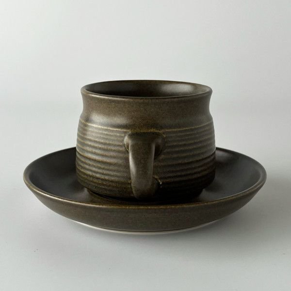 デンビー特有のぽってりとした丸みのある形が特徴のカップ&ソーサー。シンプルでシャープなデザインと温かみを持ち合わせたお品です。