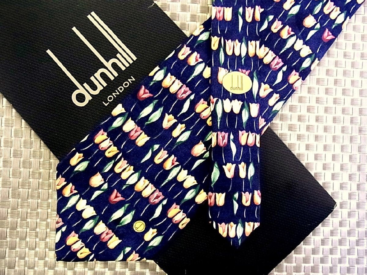 ★3570S★新品【花 チューリップ 植物 dロゴ 柄】ダンヒル【dunhill】ネクタイ