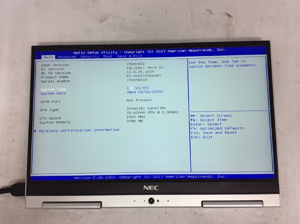 ジャンク/ NEC PC-VK23TGVG6UDY Intel Core i5-6200U メモリ4.1GB ストレージ無し 【K10962】