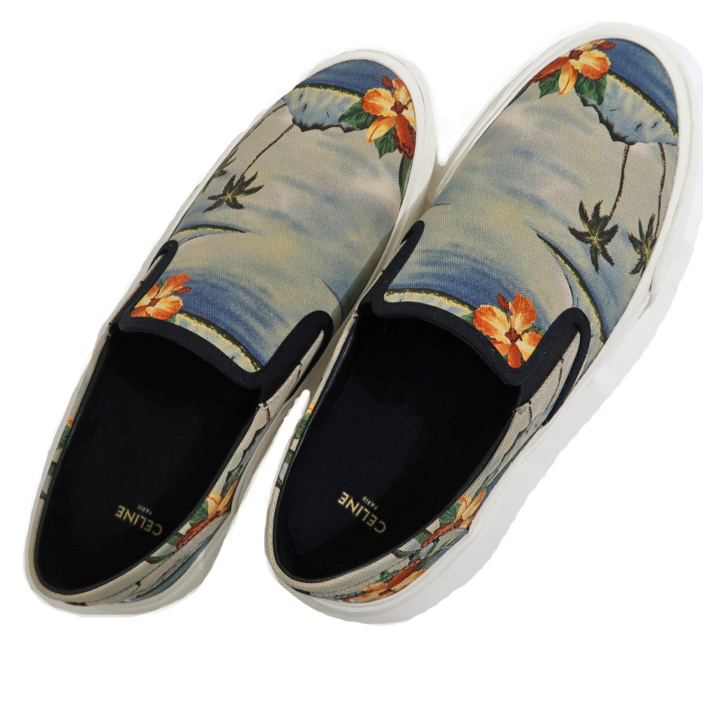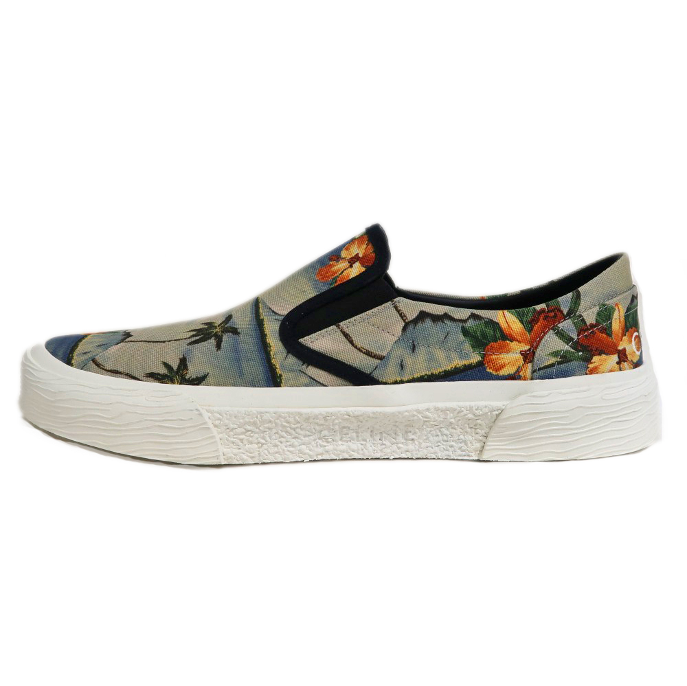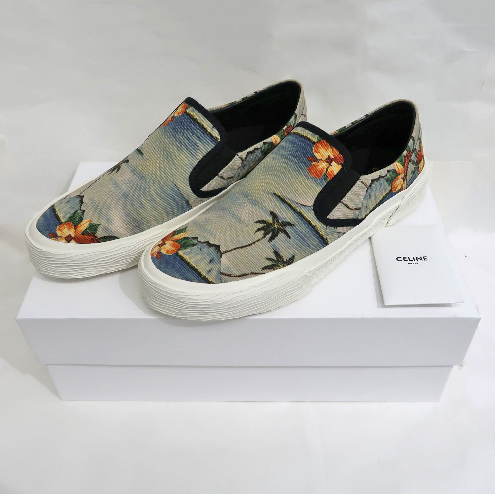 【名東】セリーヌ スリッポン サイズ43 南国風柄 グレー系 メンズ シューズ アパレル 男 靴
