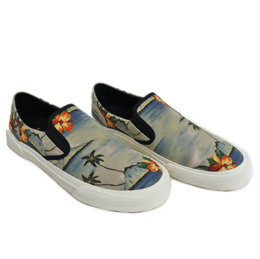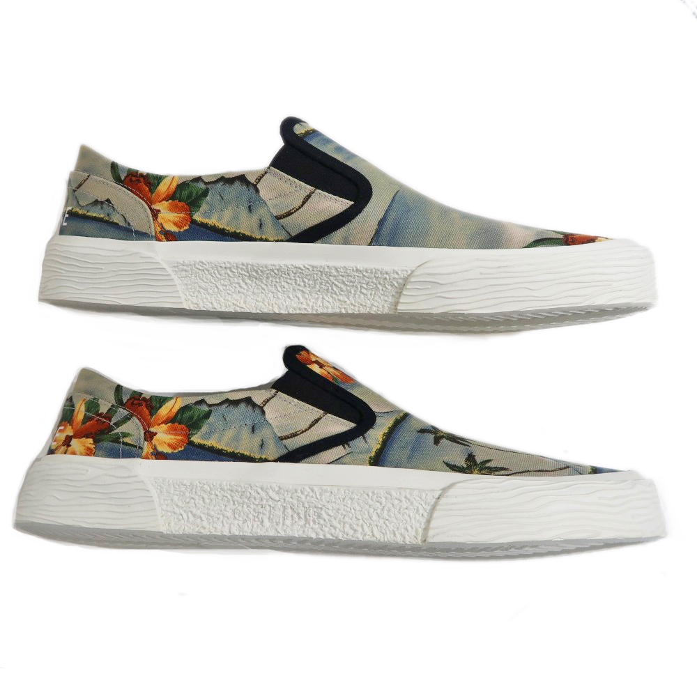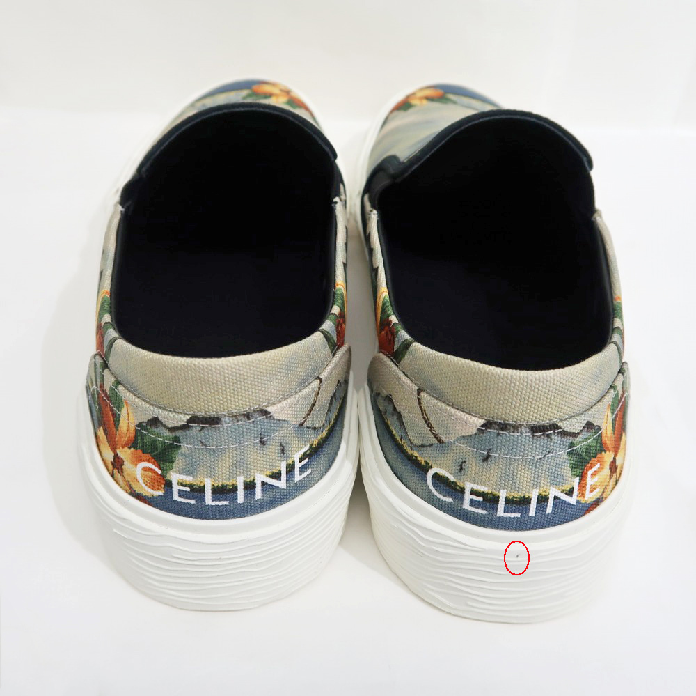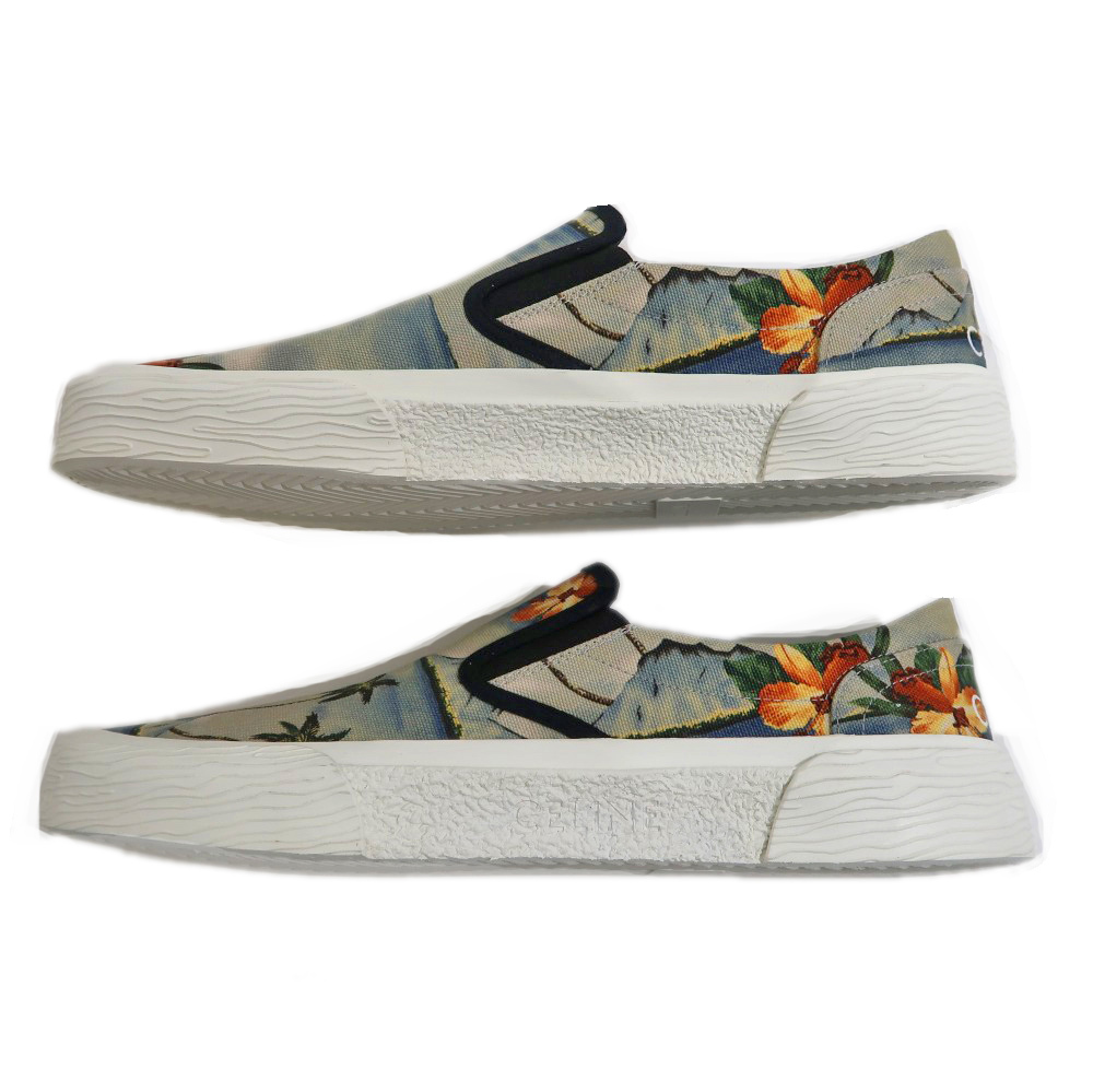 【名東】セリーヌ スリッポン サイズ43 南国風柄 グレー系 メンズ シューズ アパレル 男 靴