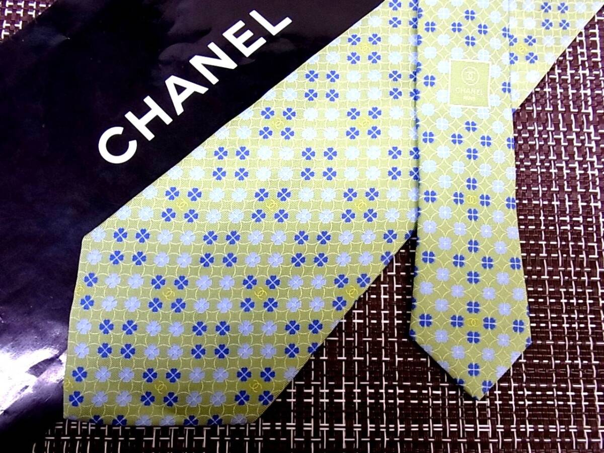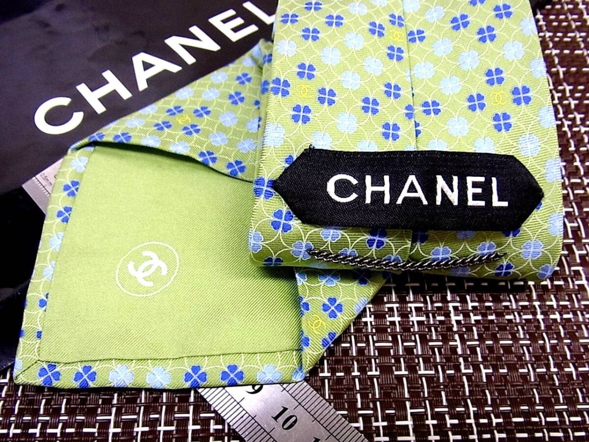 ☆状態並N☆7091■シャネル【CHANEL】 総CCロゴ柄/葉(四つ葉のクローバー) ネクタイ★