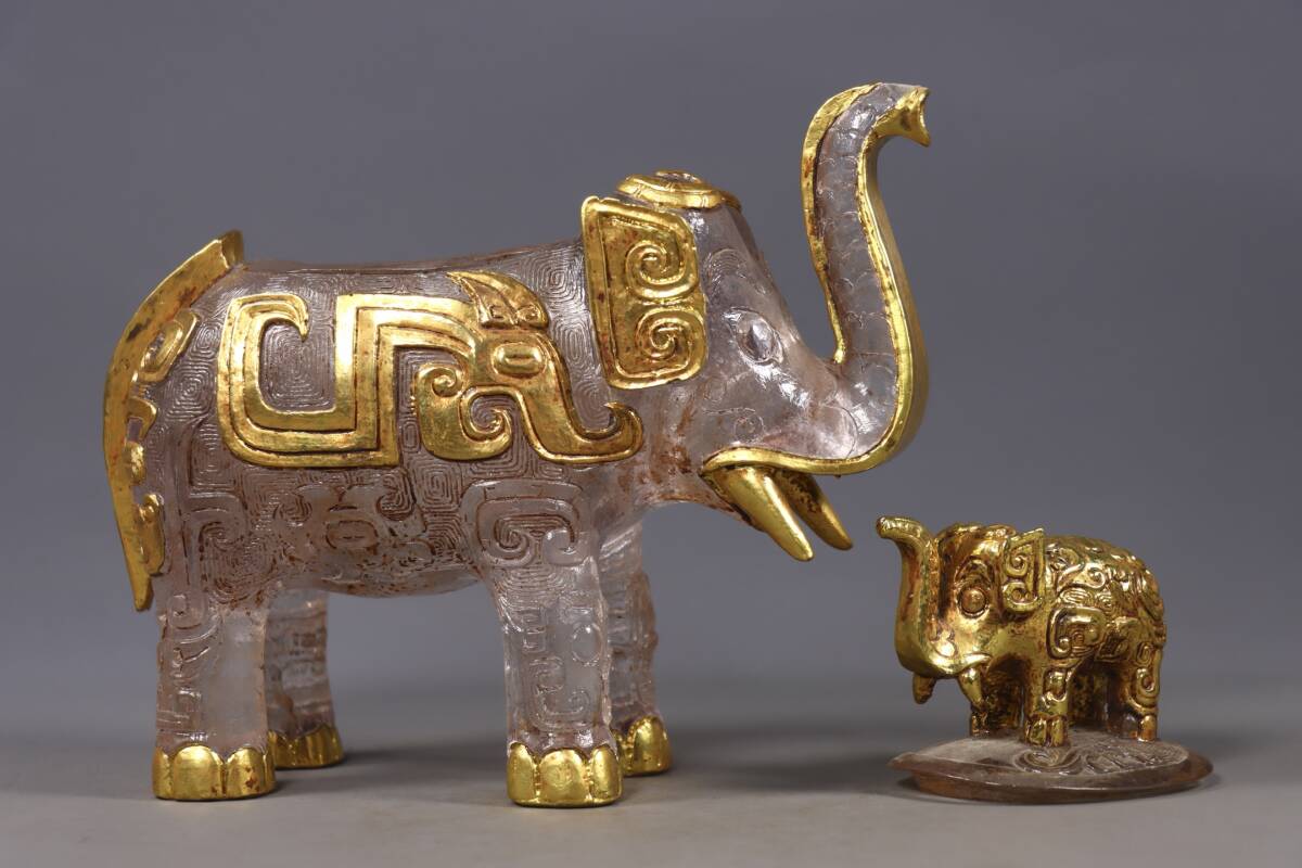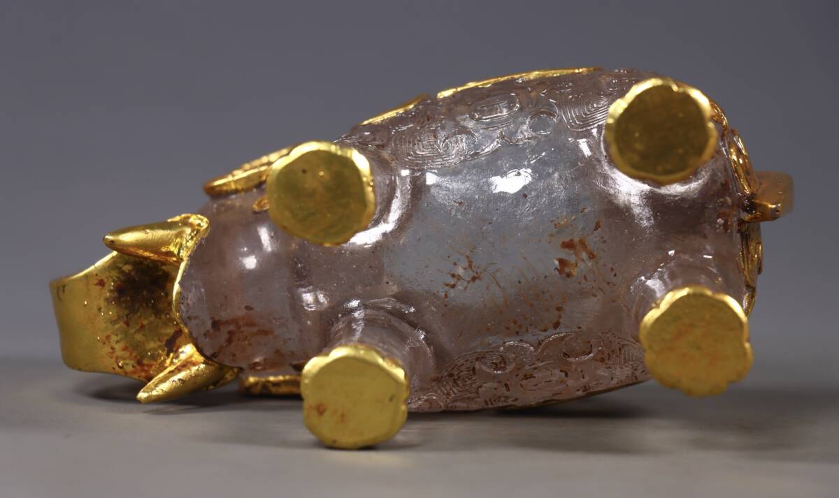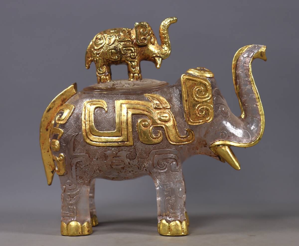 唐物 清 老瑠璃 包金 象缶 中国美術品 時代物 D63