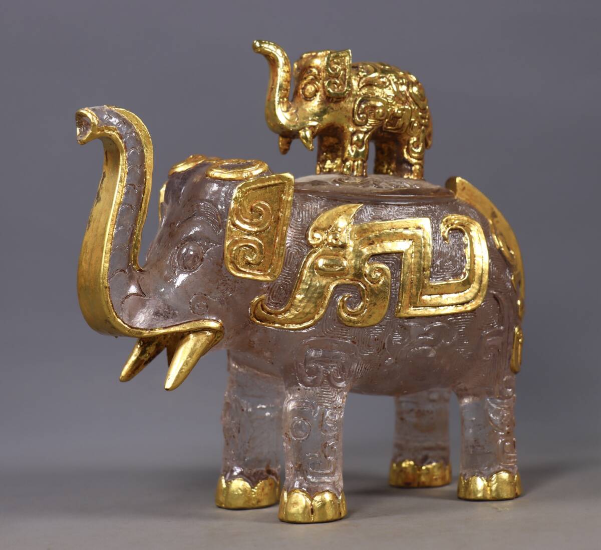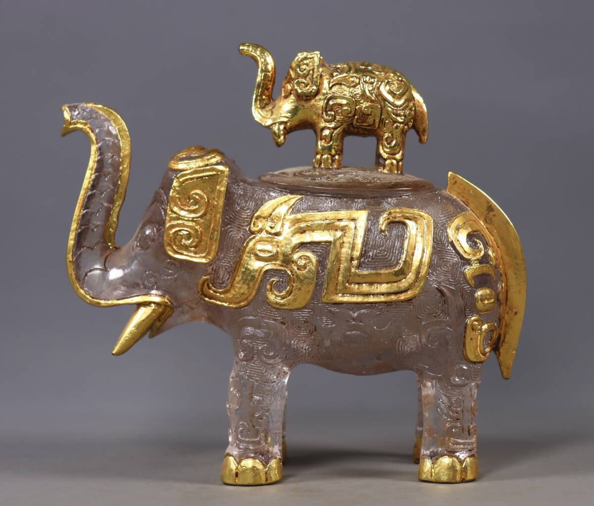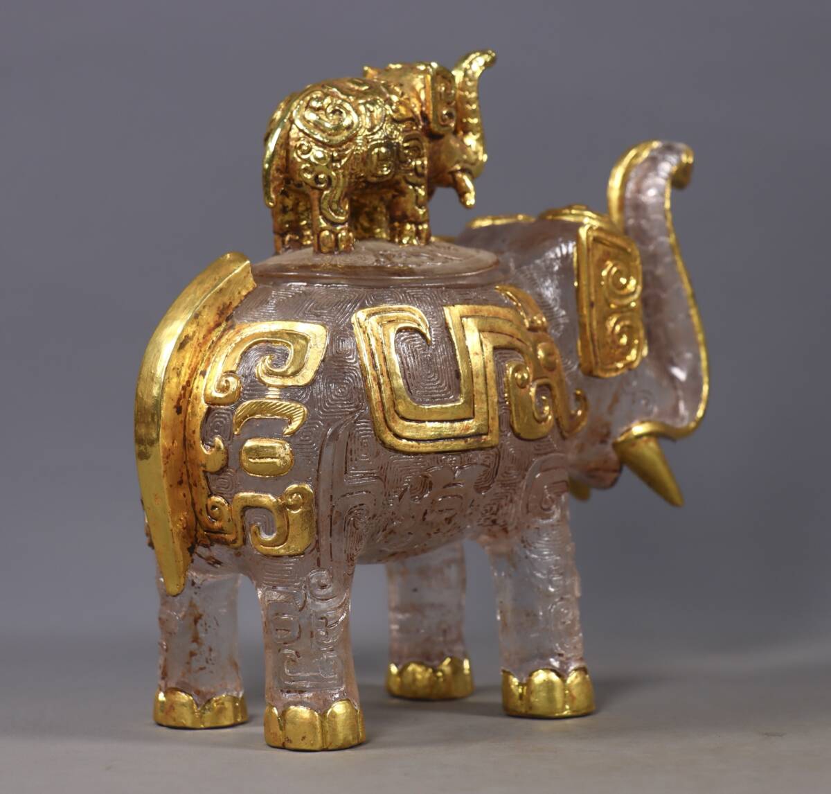 唐物 清 老瑠璃 包金 象缶 中国美術品 時代物 D63