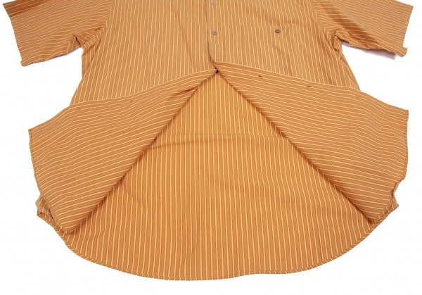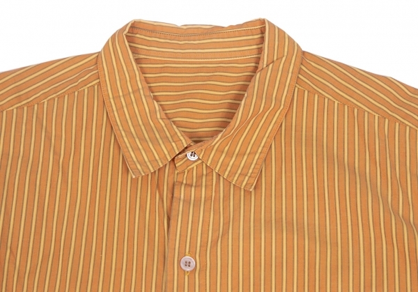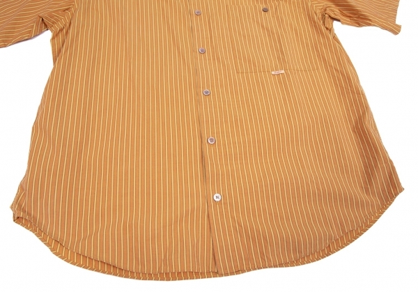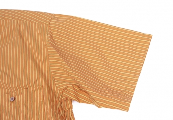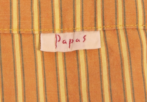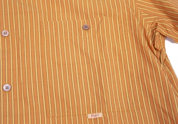 パパスPapas コットンストライプ半袖シャツ オレンジM |