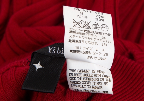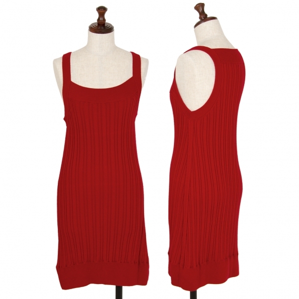 ワイズビスリミY's bis LIMI コットンアクリルリブニットノースリーブチュニック 赤S |