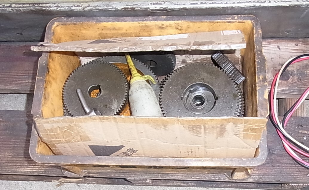 〇 付属品:写真の範囲 (段ボール箱:バイト締め付け用ハンドル+変速用ギア類)