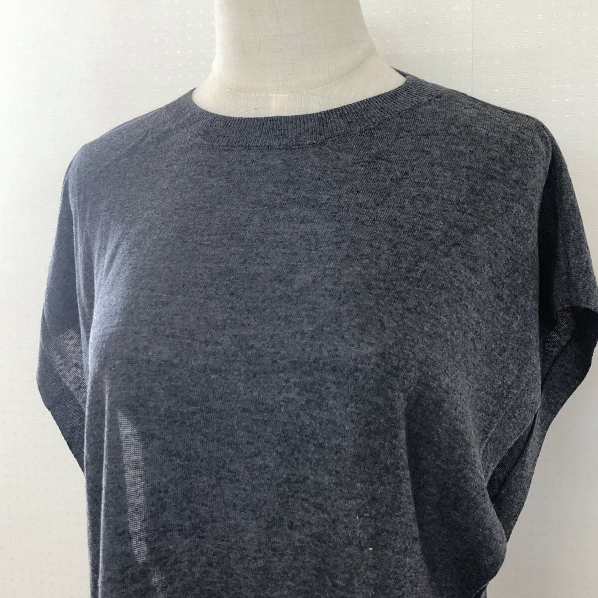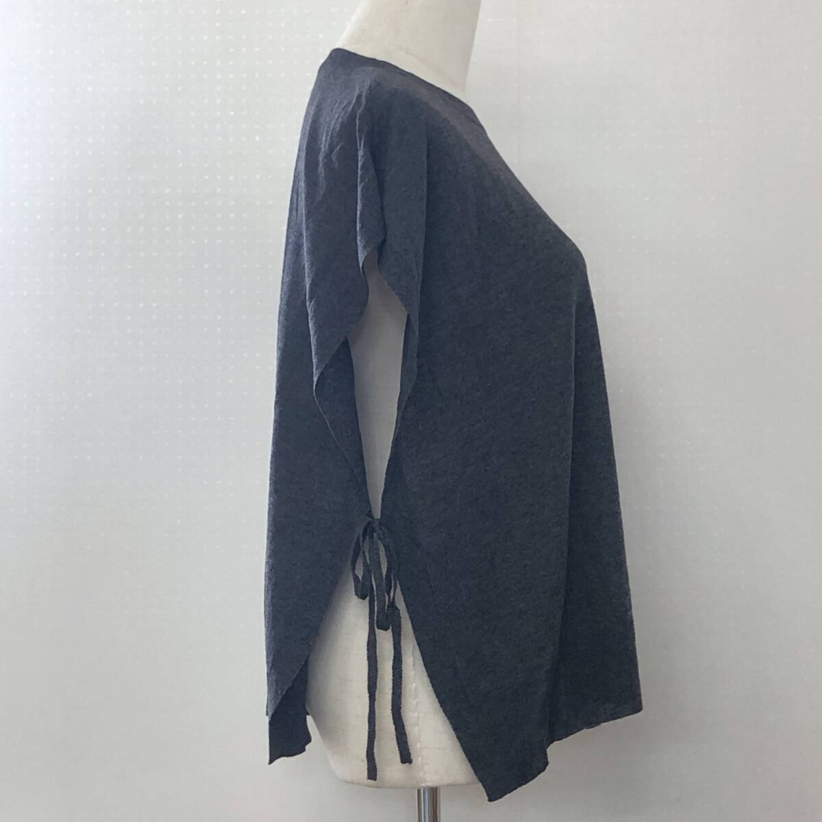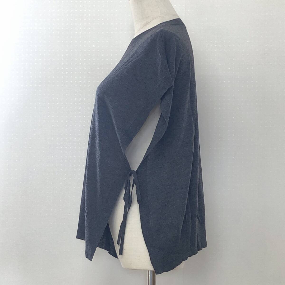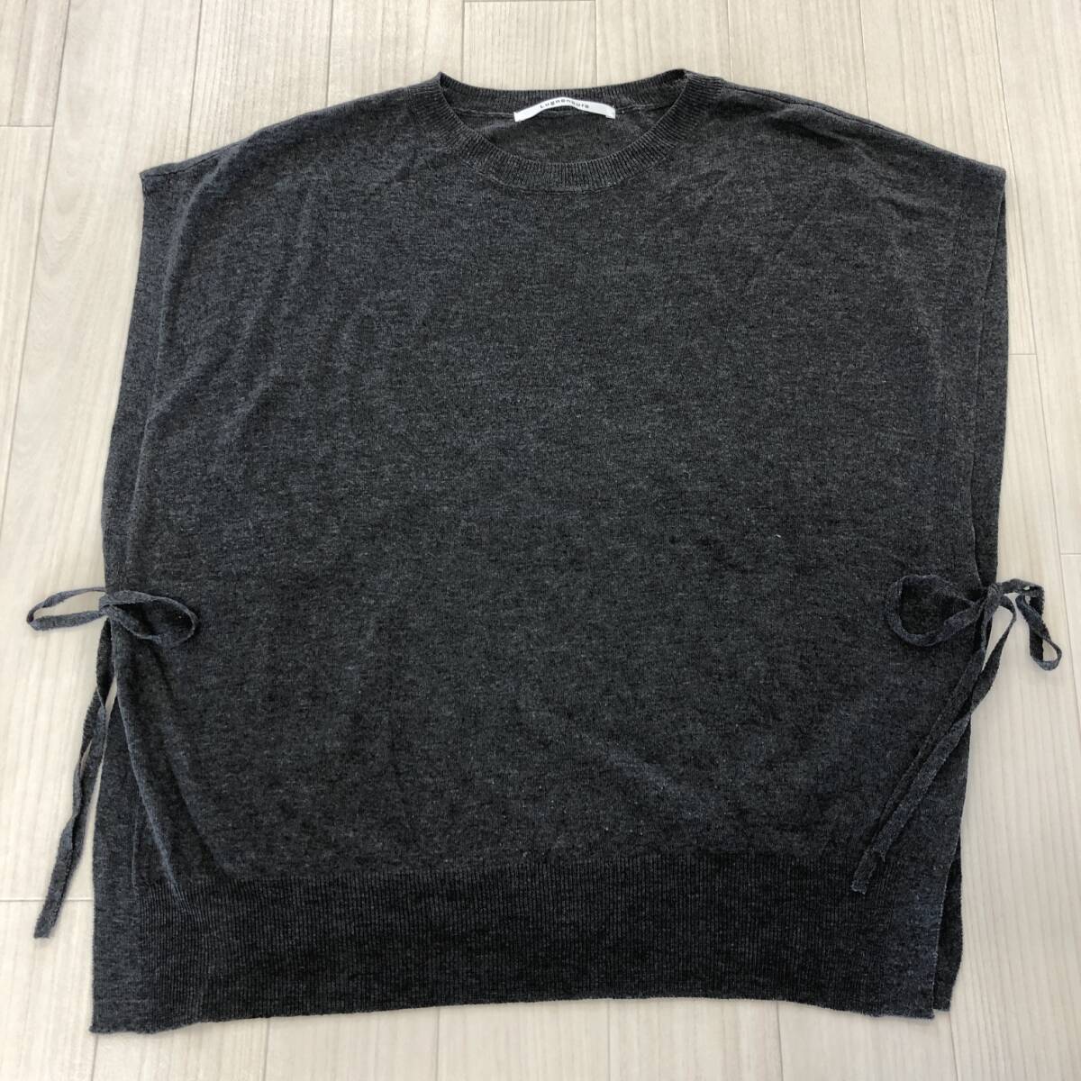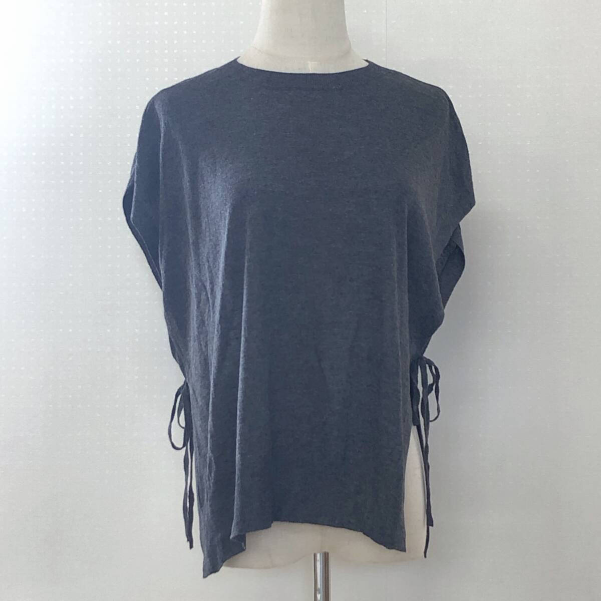Y1738 美品 Lugnoncure ルノンキュール レディース サイドリボン付きニットベスト 袖無し 透け感 伸縮性M~Lグレー灰かわいい 両側スリット