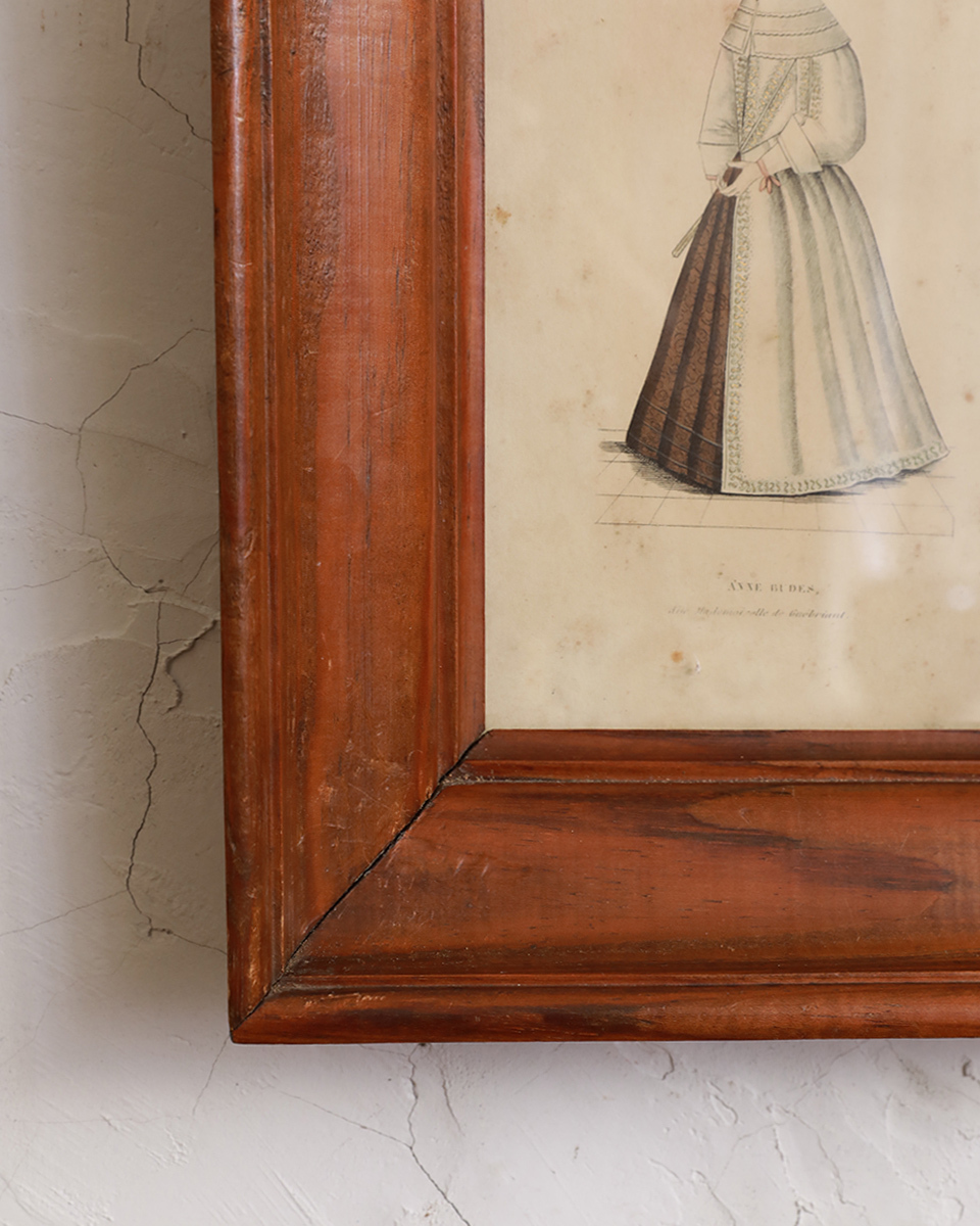 From : France フランスで買い付けたレオポルド・マサール ( Leopold Masrd )が描いた作品の複製画です。 シンプルながらも見幅が大きく丈夫な造りが印象的な高級感を感じる額縁にアン・ビュデス ( Anne Budes )「マドモワゼル・ド・ゲブリアン王妃の侍女」が収められたウォールアート。 小ぶりなサイズ感ですが格式を宿した存在感で、落ち着きを放った風貌で伝統的な空間を演出します。 商品はアンティーク品のため、お写真では伝わり難い色褪せや小傷などがございます。 追加のお写真をご希望の方はお気軽にお問合せくださいませ。 |