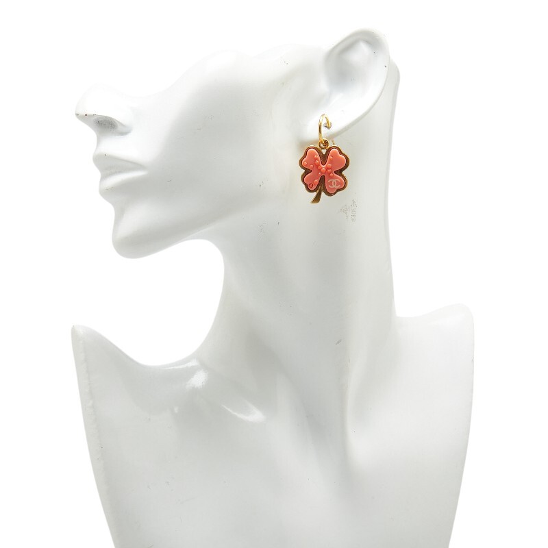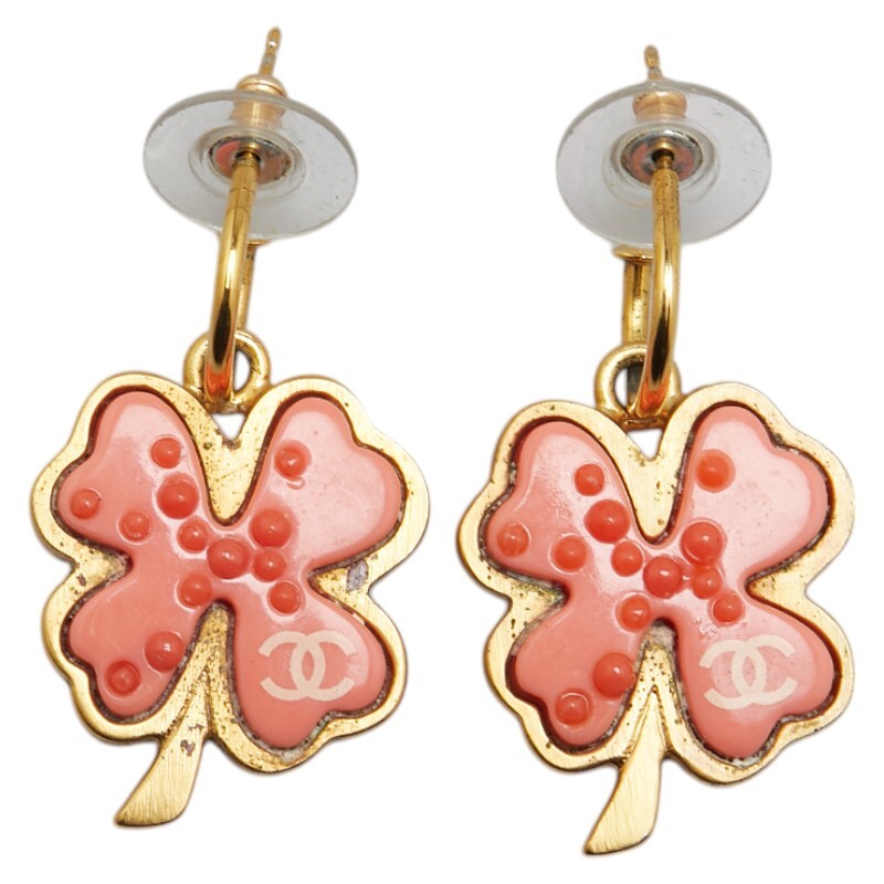 シャネル ココマーク クローバー モチーフ ピアス ピンク ゴールド プラスチック メッキ レディース CHANEL 【中古】