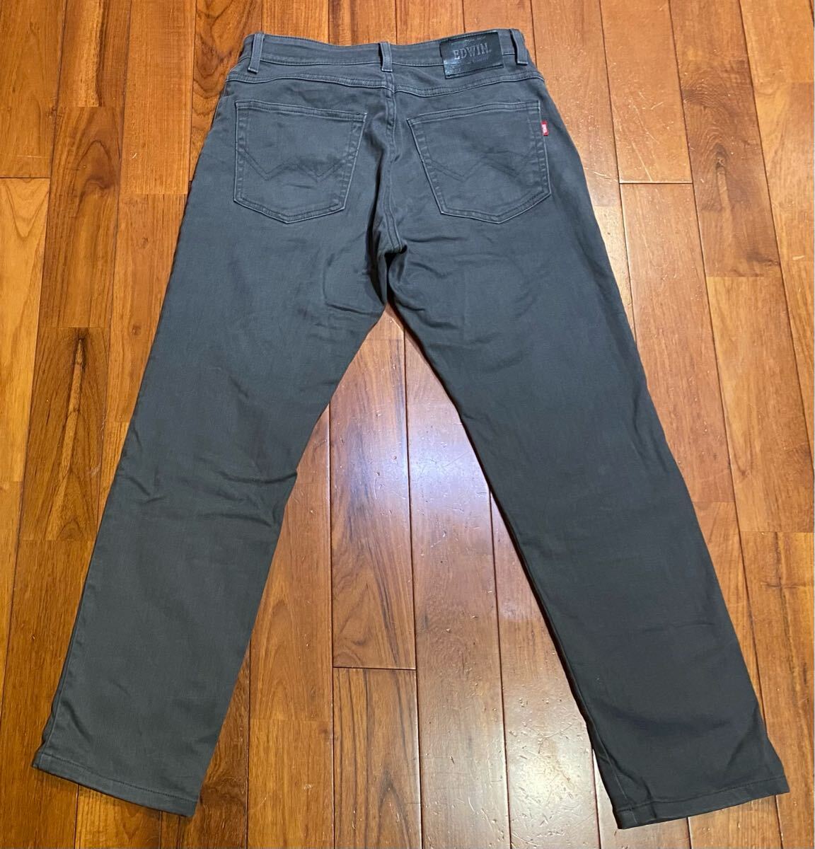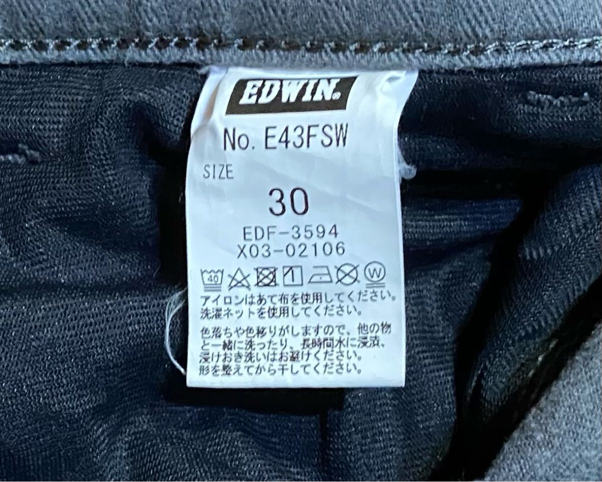 エドウィンのストレッチ暖パンツ、No.E43FSWです。USEDですが状態は良いです(10段階中8程度)。生地はストレッチ入りで綿59%、レーヨン20%、ポリエステル13%、アクリル6%、ポリウレタン2%です。ジッパーフライです。正規品です((株)エドウイン、ベトナム製)。サイズはW30でウエストは重ねずに平置きで約77cm、ヒップ約106cm、股上約25cm、股下約72cm、股下15cmのふともも部分約54cm、裾まわり約37cm、重量約500gです。発送はゆうパケットポストになります。