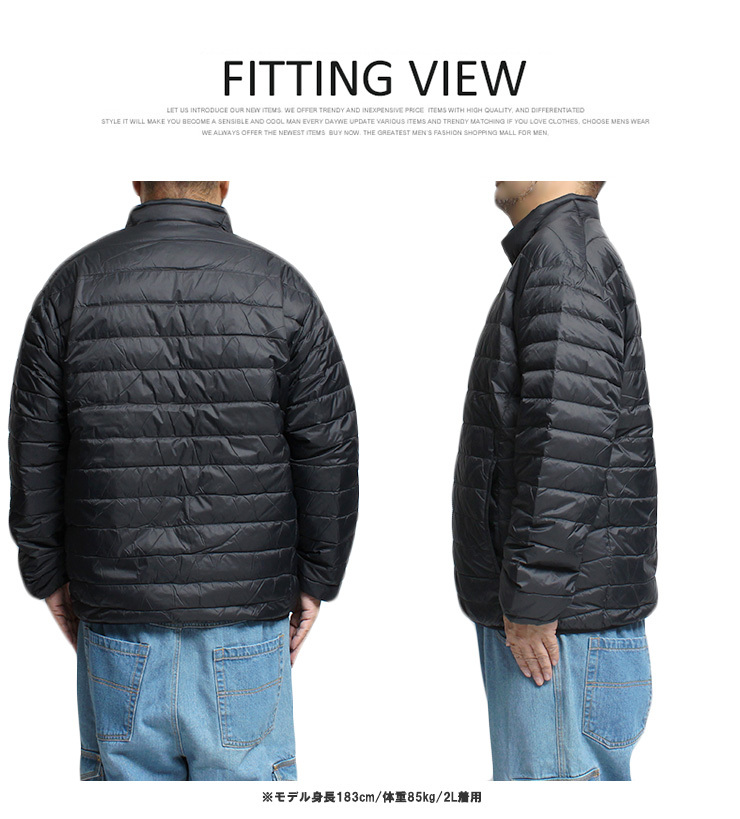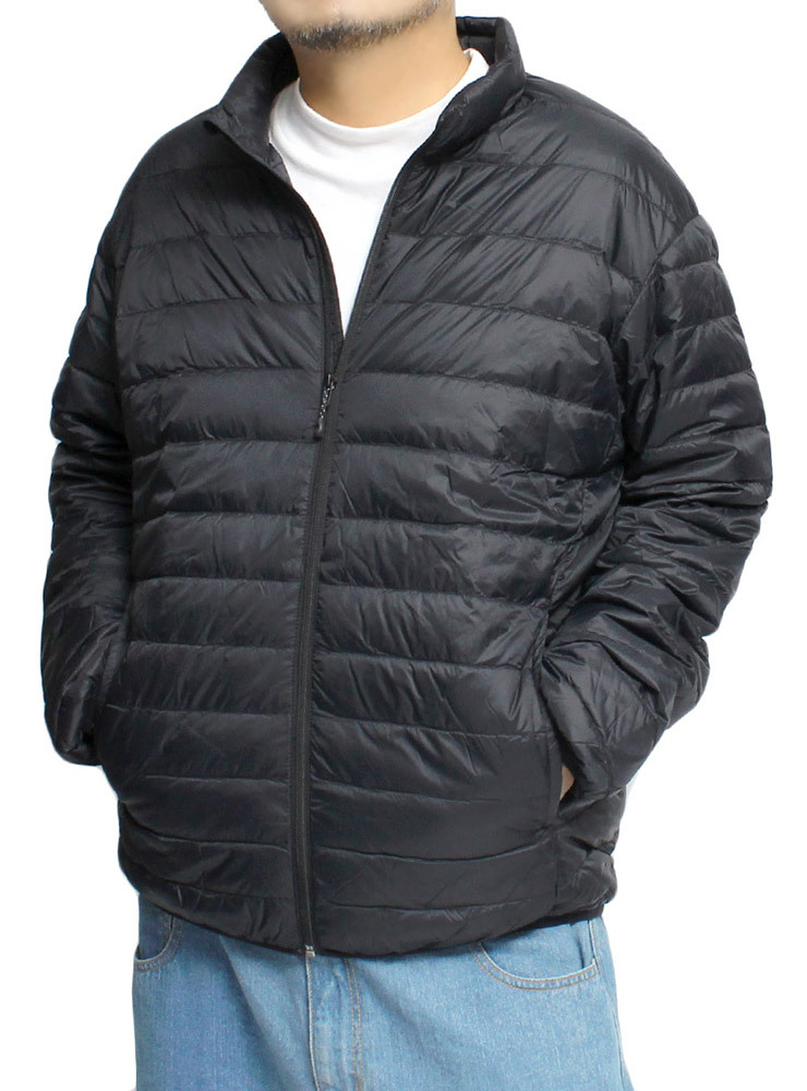商品名 | 【新品】 3L ブラック ダウンジャケット メンズ 大きいサイズ 軽量 防風 撥水加工 薄手 リアルダウン スタンド ジャケット |