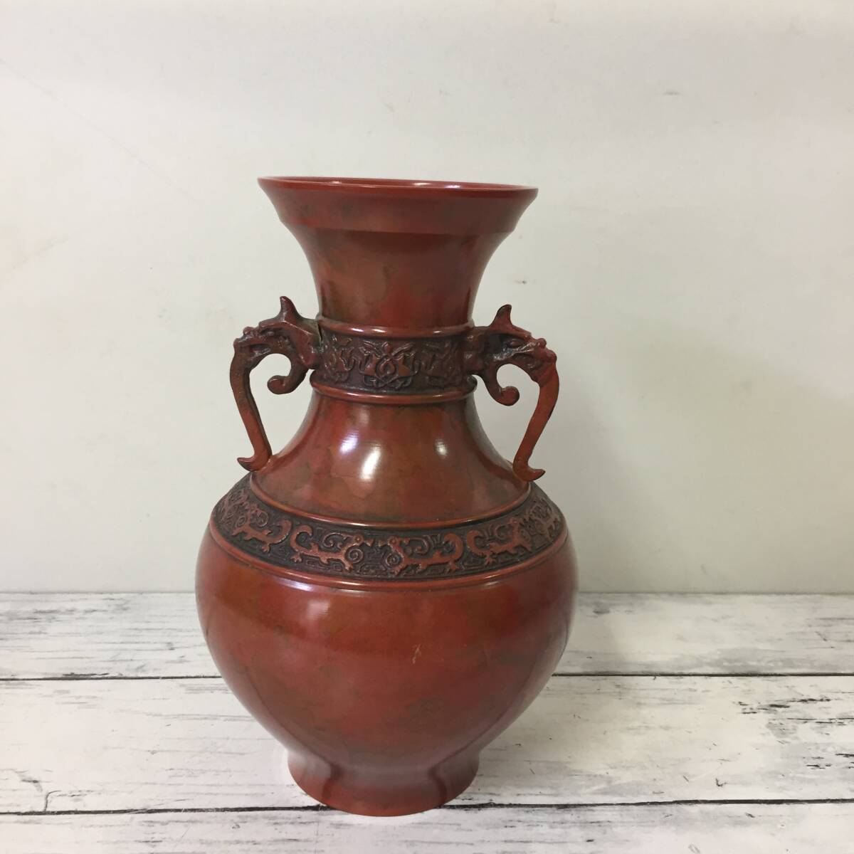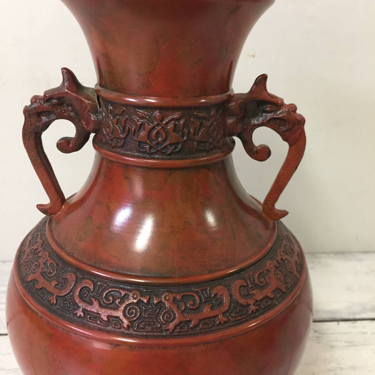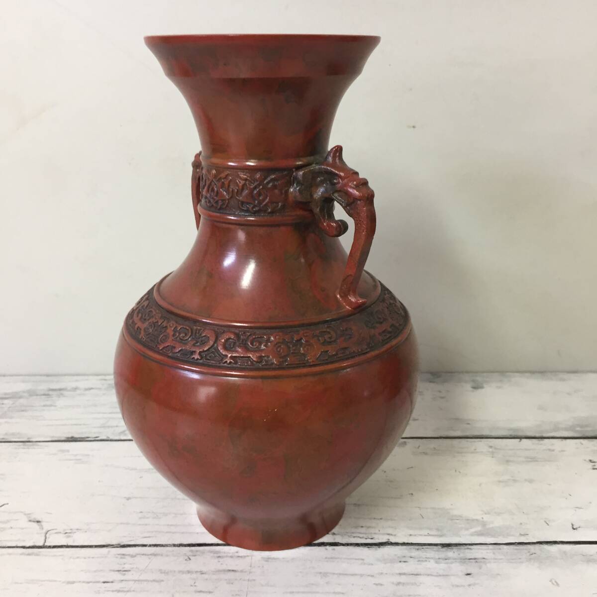 金属製 銅製 花瓶 花器 フラワーベース 一輪挿し 壺 七寸 端竜 ムラ朱 銘有 Z50329