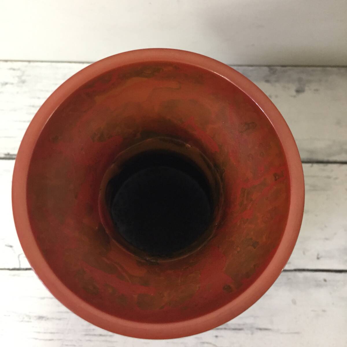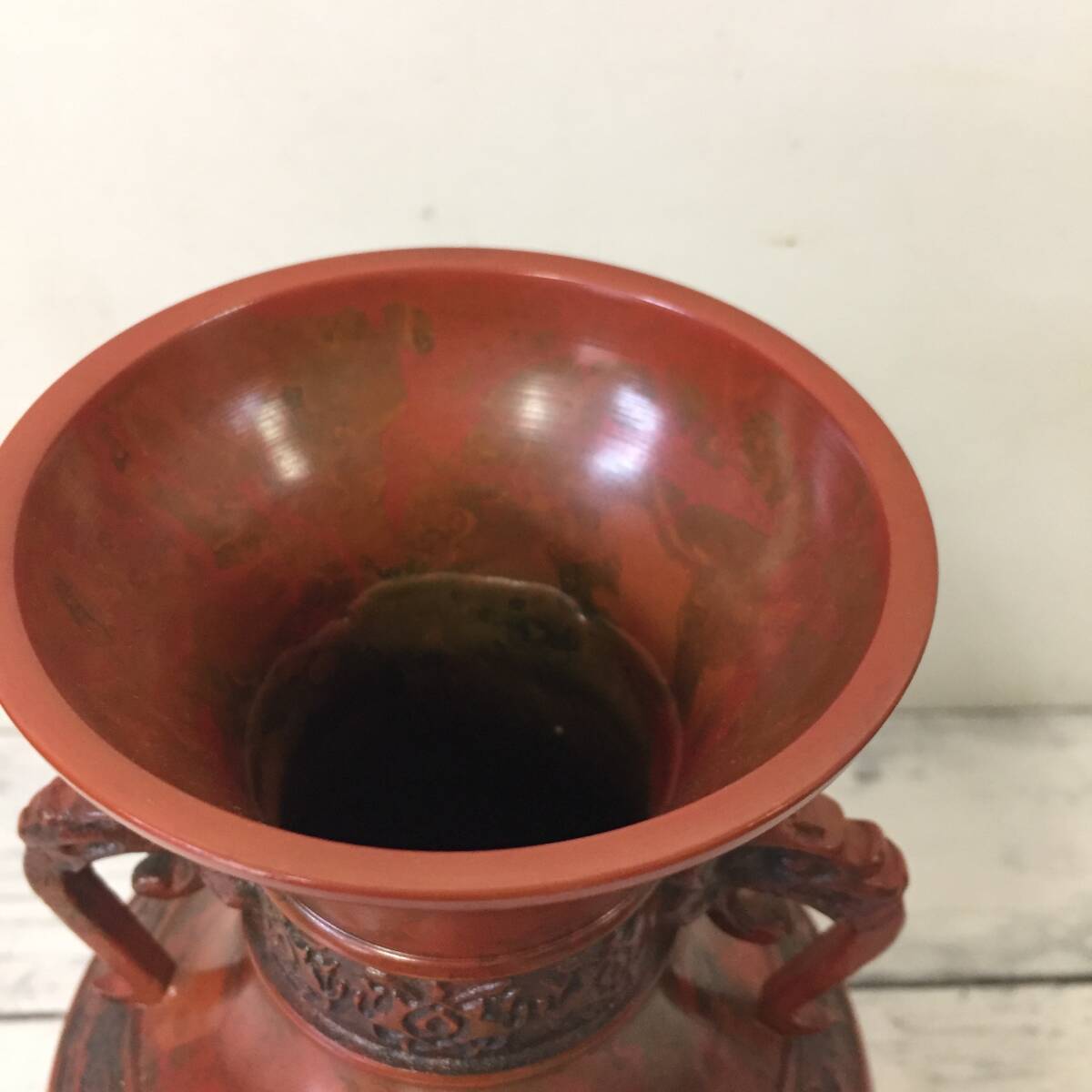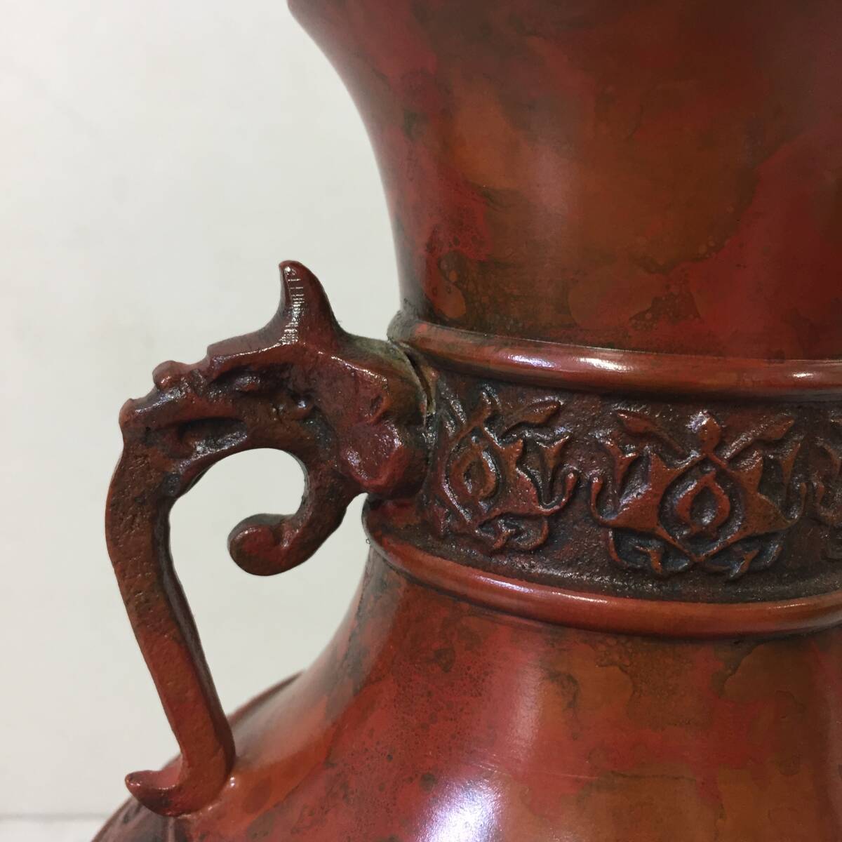 金属製 銅製 花瓶 花器 フラワーベース 一輪挿し 壺 七寸 端竜 ムラ朱 銘有 Z50329