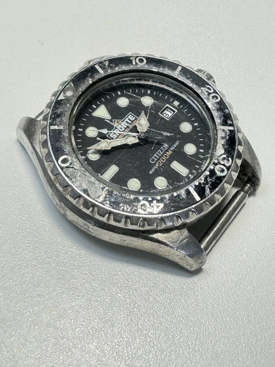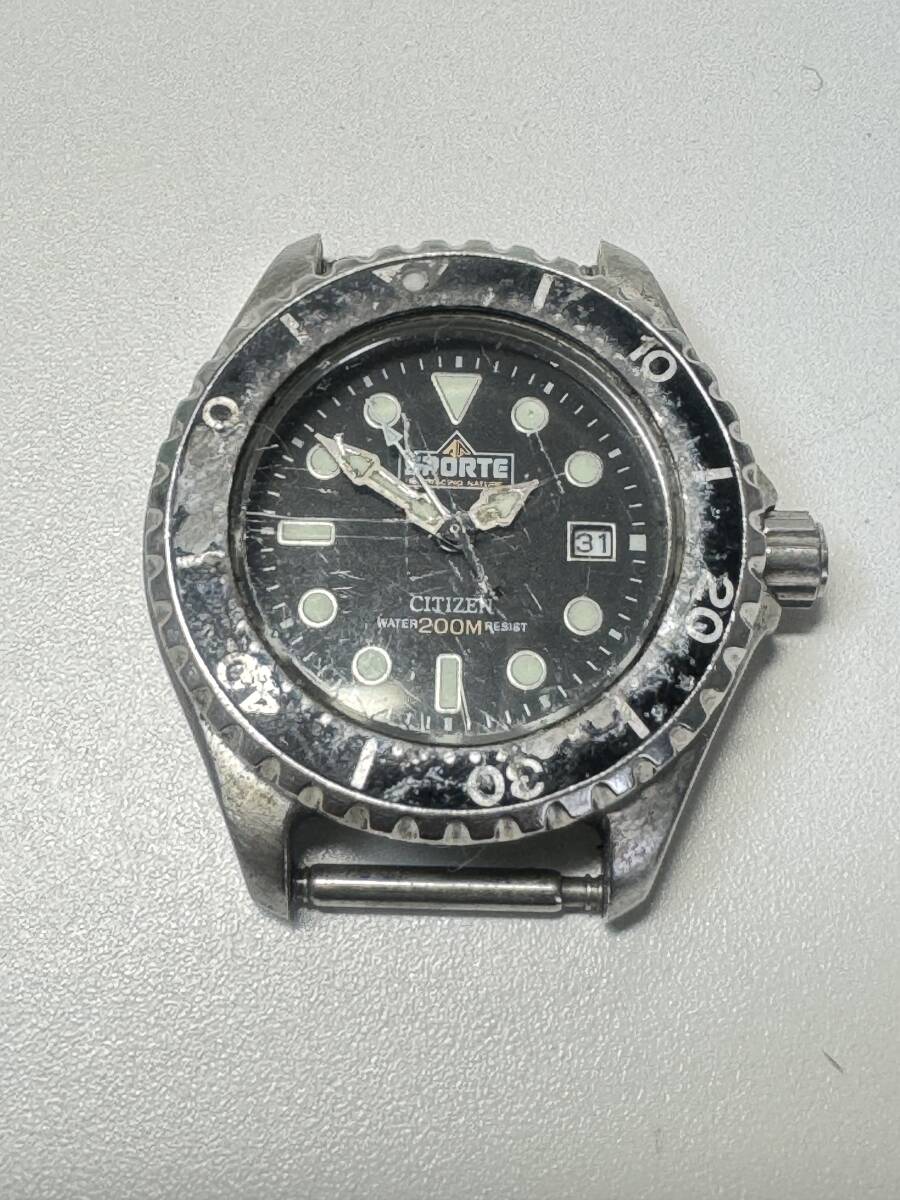 P453 稀少・レア 腕時計 CITIZEN SPORTE/シチズン スポルテ EMBRACING NATURE 200m 6018-G08679 TA デイト 黒文字盤 ベルトなし