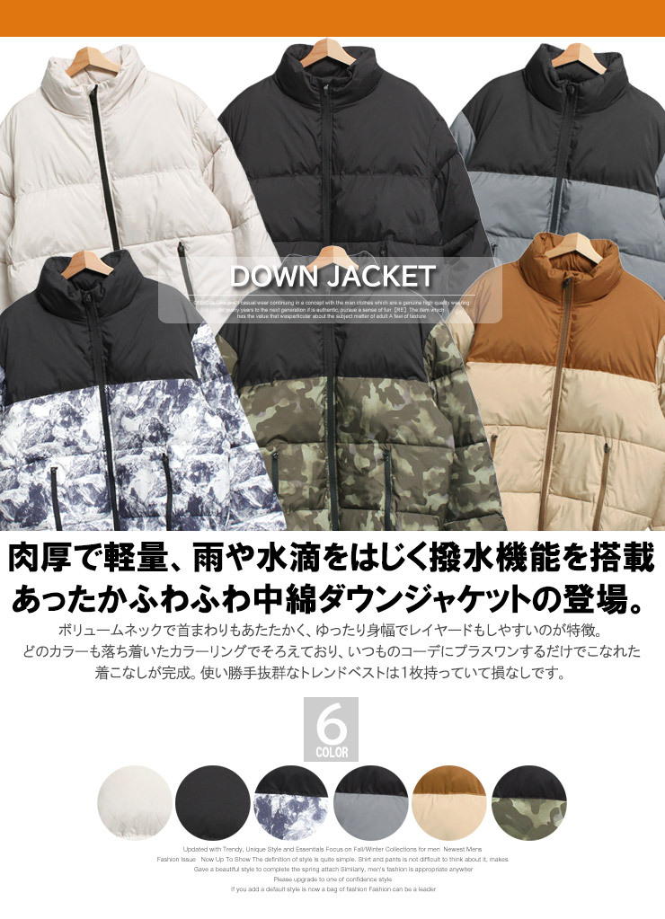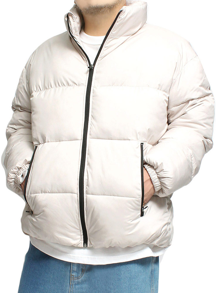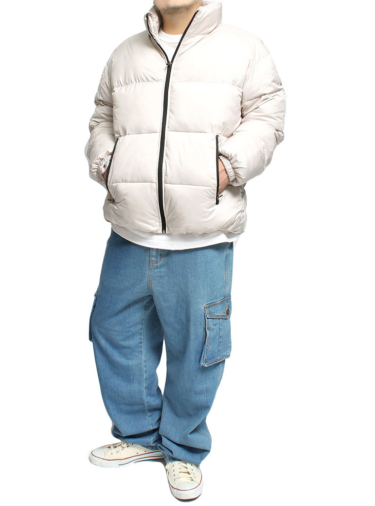 商品名 | 【新品】 M アイボリー 中綿 ダウンジャケット メンズ 撥水加工 軽量 ジップアップ ボリュームネック スタンド ブルゾン |