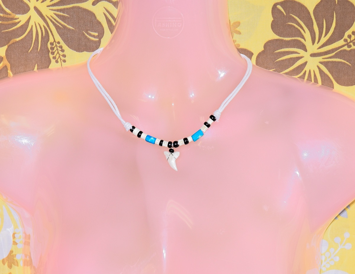 サメの歯とビーズでデザインされた、チョーカーネックレスです。