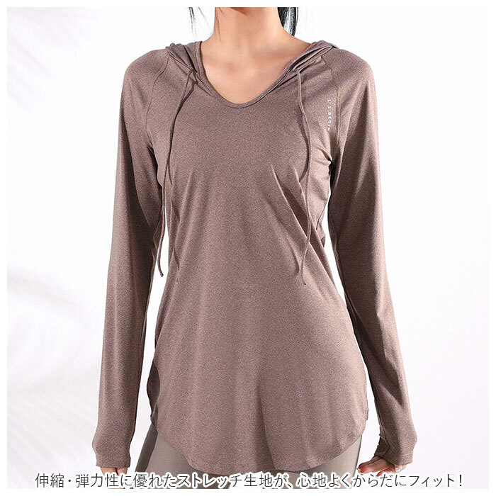 | 商品説明 | ・・ゆるっと着て体型カバー。フィットネスやヨガに最適なヨガ ウェア トップス 長袖が登場! ・伸縮・弾力性に優れたストレッチ生地が、心地よくからだにフィット! ・ボディラインが自然とシャーリングを作り出し、美シルエットを生み出す。 ・ヒップが隠れる長めの着丈と長袖で気になる体型をカバー。 ・深すぎないVネックラインとフードが小顔&デコルテ美人に。 ・右サイドには便利なポケット付き。 ・柔らかな肌ざわりと、締め付けない快適な着心地は、おうちやジムで過ごす時間をより上質なものに♪ |